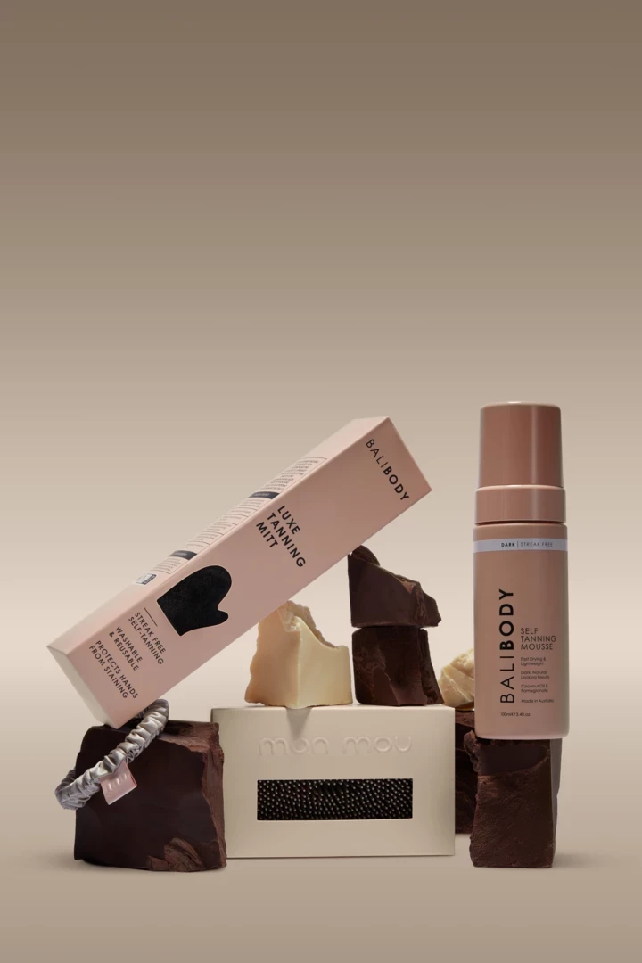 Український бренд виняткових шовкових аксесуарів Mon Mou об’єднався з австралійським зірковим брендом Bali Body, щоб створити розкішний набір для автозасмаги. Лімітований сет Soft Chocolate Base містить мус для автозасмаги, шовкову щітку та рукавичку. Безпечна засмага дарує шоколадний тон шкірі.