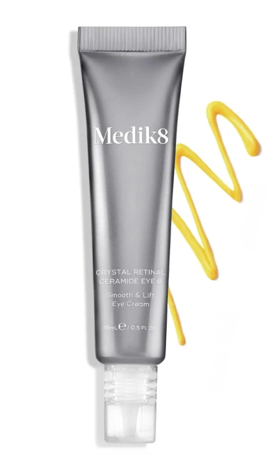 Один із найсильніших засобів у добірці для ночі. Містить retinaldehyde (ретинал — більш активний і швидкодійний попередник ретинолу), а також кераміди й гіалуронові сфери. За одну ніч видно покращення тонусу й гладкості. Крем Medik8 Crystal Retinal Ceramide Eye має кілька версій із різною силою ретиналя (ретиналдегід). Це активний інгредієнт, який працює проти зморщок і для оновлення шкіри, але може бути досить потужним. Тому були створені концентрати різної інтенсивності, що дозволяє поступово вводити його в рутину. Важливо: ранком обов’язково використовувати SPF.