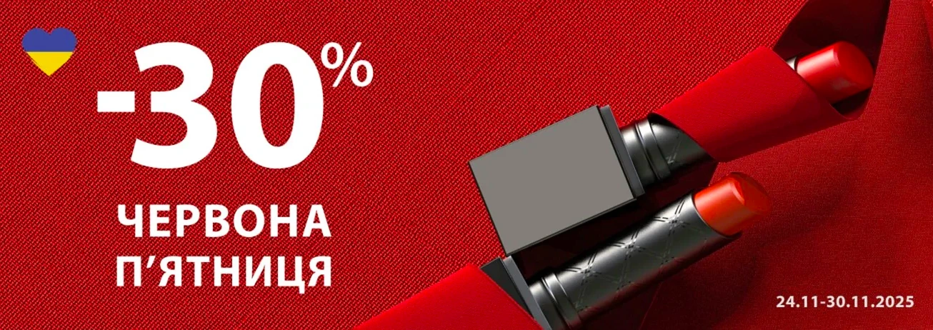 Тижнева Червона П’ятниця дарує -30% на майже весь асортимент (є невеликі винятки), а для гостей у червоному приготований ще додатковий відсоток. Ідеальна можливість поєднати атмосферу свята, гарний настрій і максимально вигідний шопінг.
