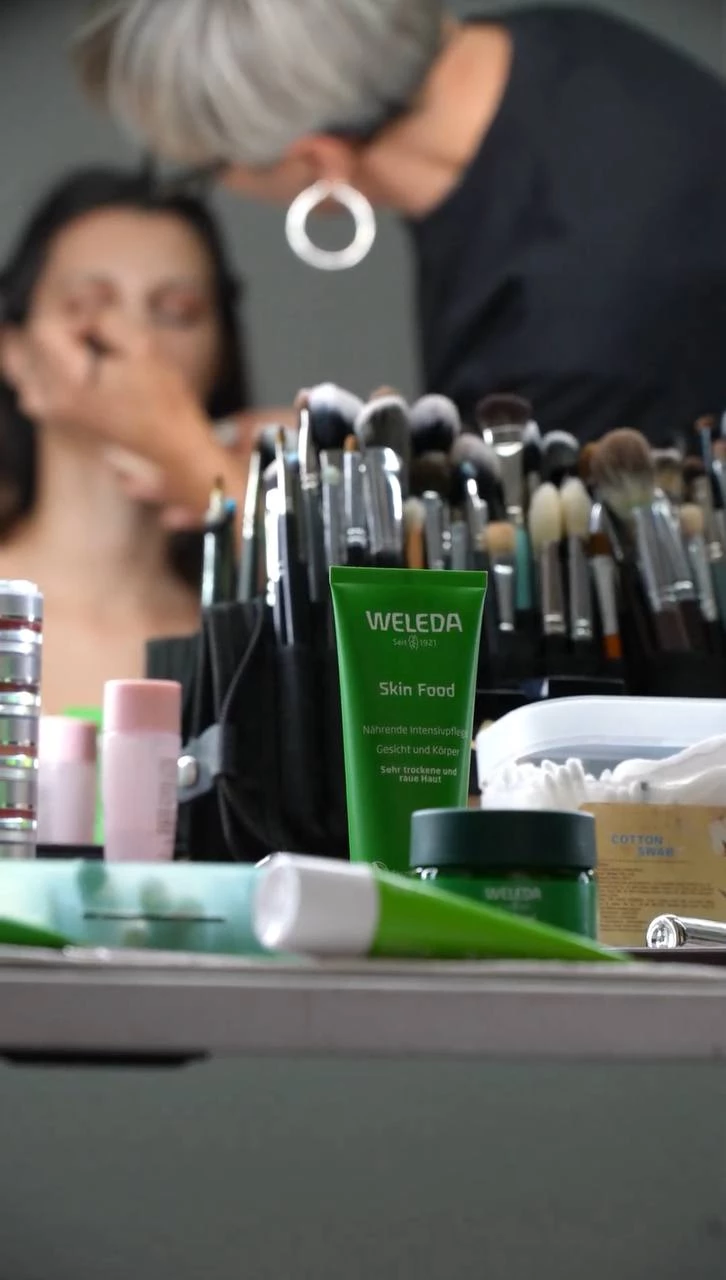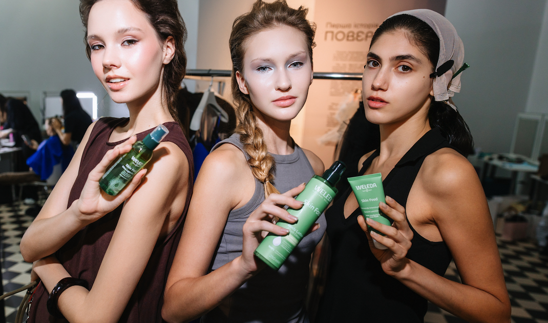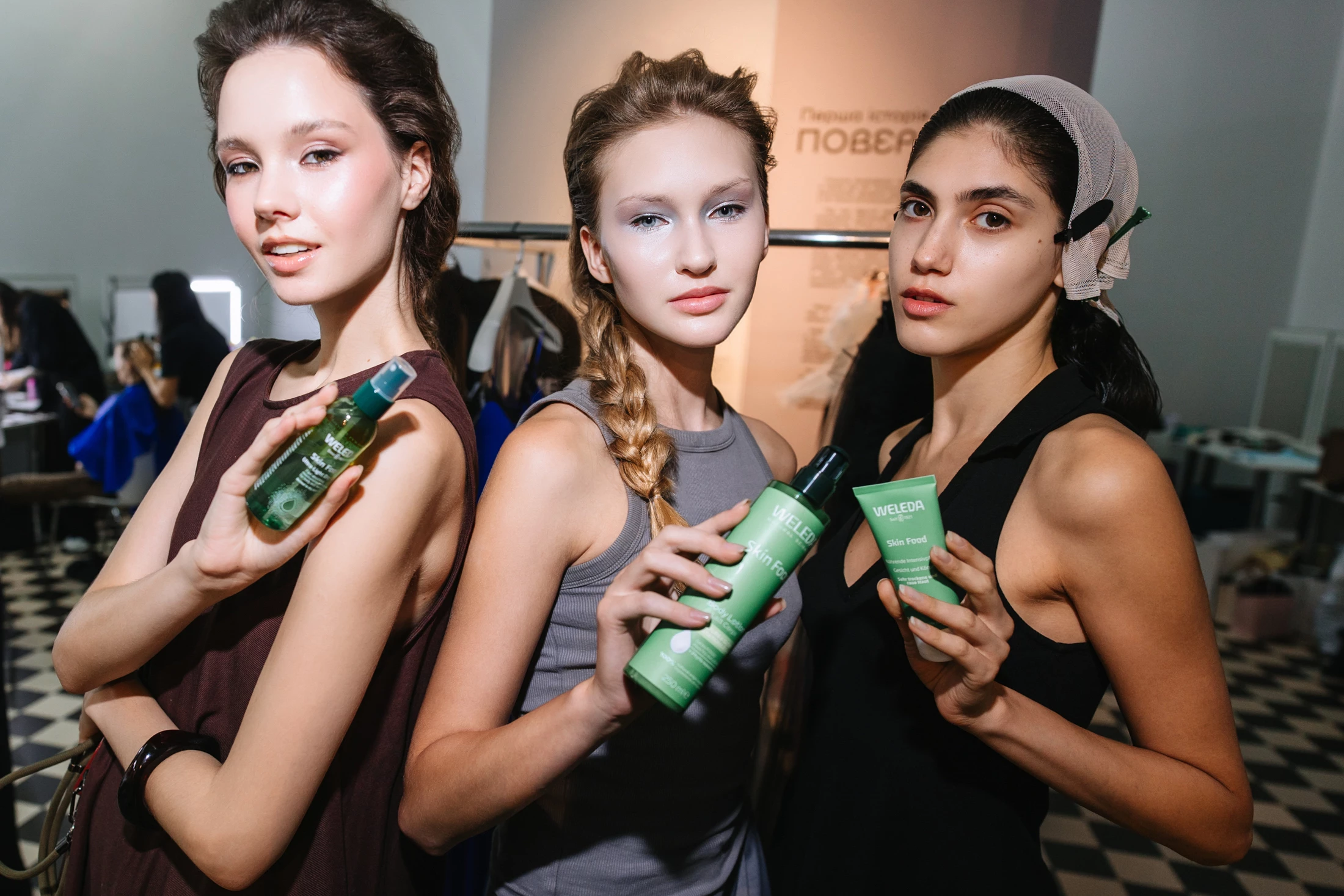 За кулісами UFW візажисти активно використовували Weleda Skin Food. Крем із багатою текстурою став фінальним штрихом у створенні образів, додаючи шкірі природного glow-ефекту на вилицях, губах, повіках і ключицях. Саме завдяки йому світло софітів підкреслювало живе сяйво моделей, ніби воно йшло зсередини.
