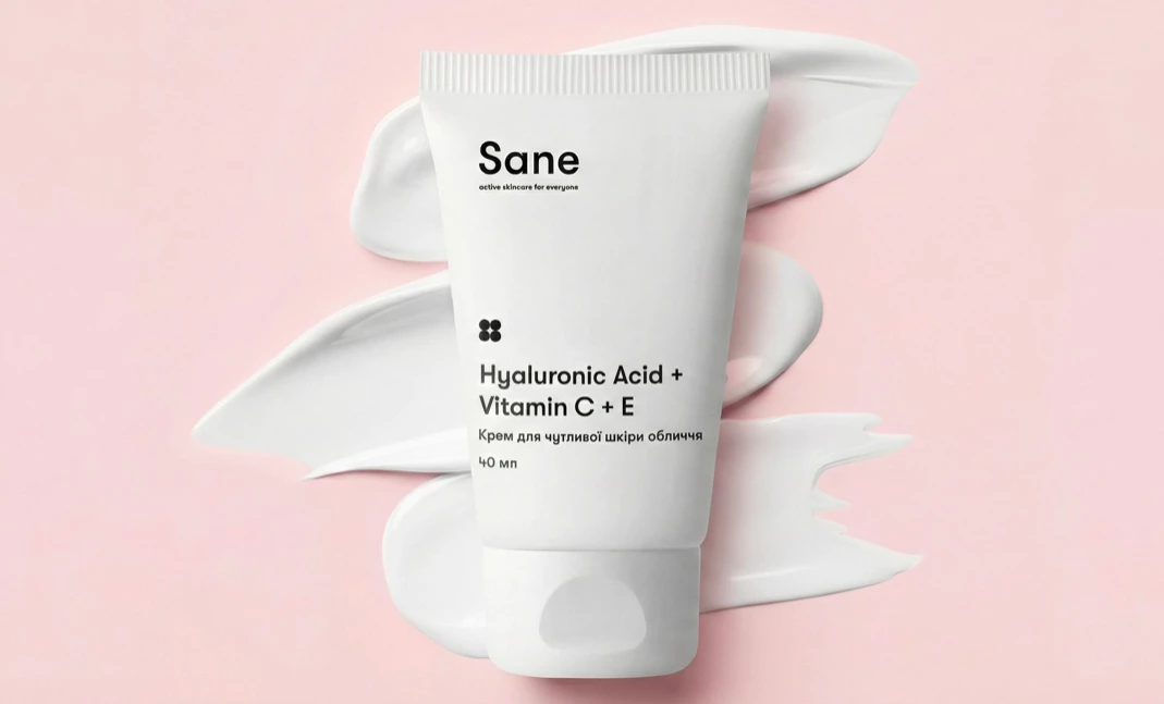 1. Крем для чутливої шкіри обличчя з гіалуроновою кислотою та вітамінами Sane