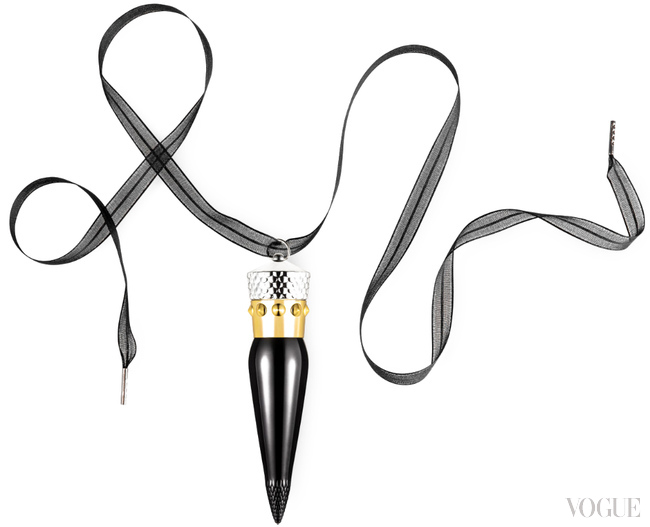 Создавая коллекцию, Кристиан Лубутен вдохновлялся сокровищницей египетской царицы Нефертити. В результате получились флаконы-пули, увенчанные коронами и украшенные небольшими петлями, чтобы их можно было закрепить на цепочке или шелковой ленте и носить как ожерелье.