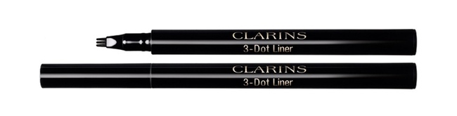 1. Рідкий лайнер для очей з потрійним аплікатором Clarins 3-Dot Liner– головна прем'єра колекції Ombre Minerale. Твердий маркер-тризуб легко, швидко, а головне акуратно промальовує краї очей на відміну від багатьох підводок, фломастерів та лайнерів. Особливої вправності не потрібно, головне – точково торкатись повік біля коріння вій, щоб вони стали густішими, насиченими і чорнішими. Малювати класичні стрілки маркером можна двома шляхами – точковим, тобто пройтись по всьому краю вій два-три рази, або ж провести суцільну лінію, у кого не тремтить рука. Основний плюс підводки – вона моментально сохне і тримається протягом дня.