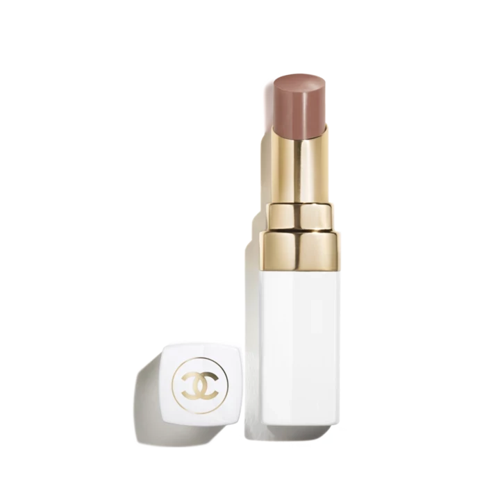 Для створення ефекту внутрішнього світла на вилицях, спинці носа та над верхньою губою використовували прозорий бальзам-хайлайтер Baume Essentiel Transparent – культовий засіб Chanel, який заслуговує місця в кожній косметичці.