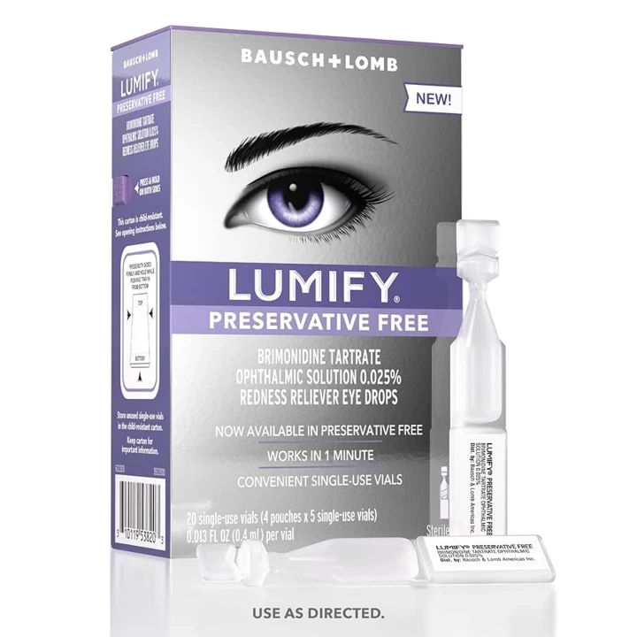 Lumify Redness Reliever Preservative Free Eye Drops в разових ампулах, 20 Single Use Vials, Bausch & Lomb