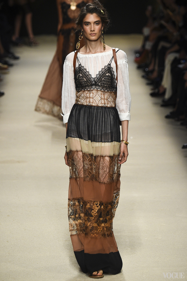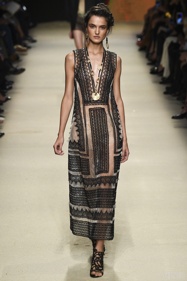 На показе Alberta Ferretti весна-лето 2016 модели выходили на подиум с драматичными позолоченными лицами. "Это как если бы закат в пустыне поразил их лица и окрасил бронзовыми бликами", – рассказала за кулисами шоу звездный визажист Шарлотта Тилбери.