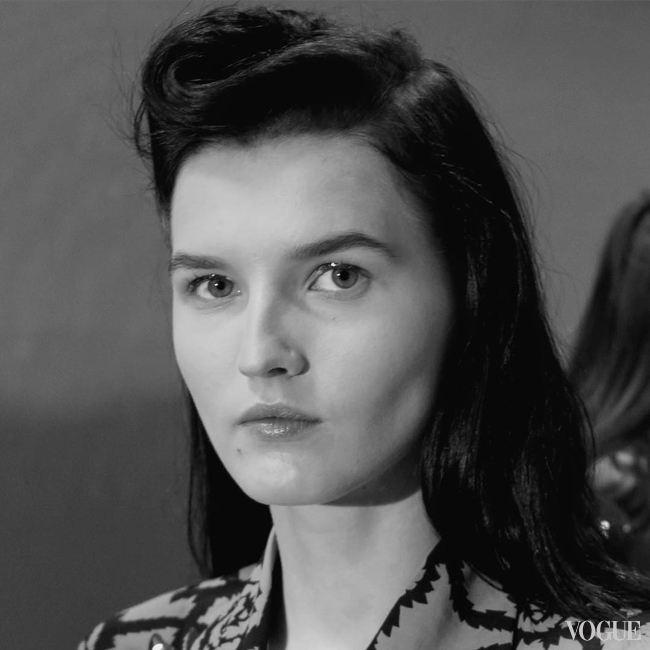Знаменитый стилист уложил волосы на макушках девушек на правую сторону от косого пробора, свернул их в валики, а затем закрепил невидимками. В отличие от укладок, которые носили женщины в 40-х, остальную часть волос он не накручивал в крупные локоны, а оставил их прямыми: свободные концы коков Макнайт распределил по затылку, а остальные пряди заправил за уши. В сочетании с прическами модели в длинных двубортных пальто, словно в шинелях, напоминали фронтовых девушек. А множество блесток, дополнявших одежду и макияж, были лишь способом бегства от реальности и сегодняшних конфликтов. Или, быть может, искрами надежды на мир.