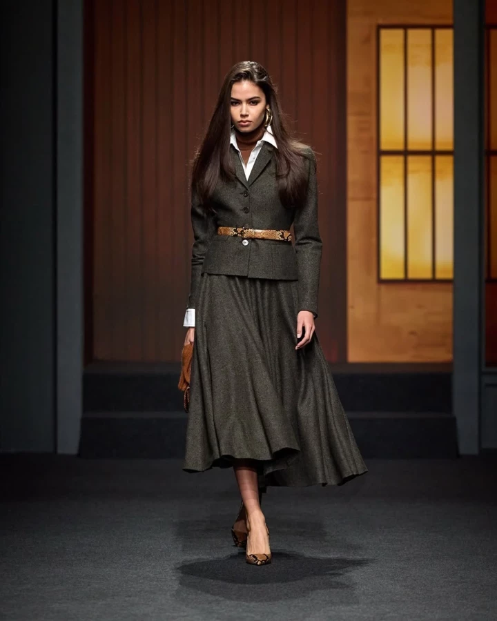Колекція Luisa Spagnoli Fall Winter 2026, навіяна Нью-Йорком кінця 1980-х — початку 1990-х, поверталася до легендарних образів того періоду та препарувала ідею power dressing: підкреслена лінія плечей, вивірені пропорції, дисциплінований крій.
