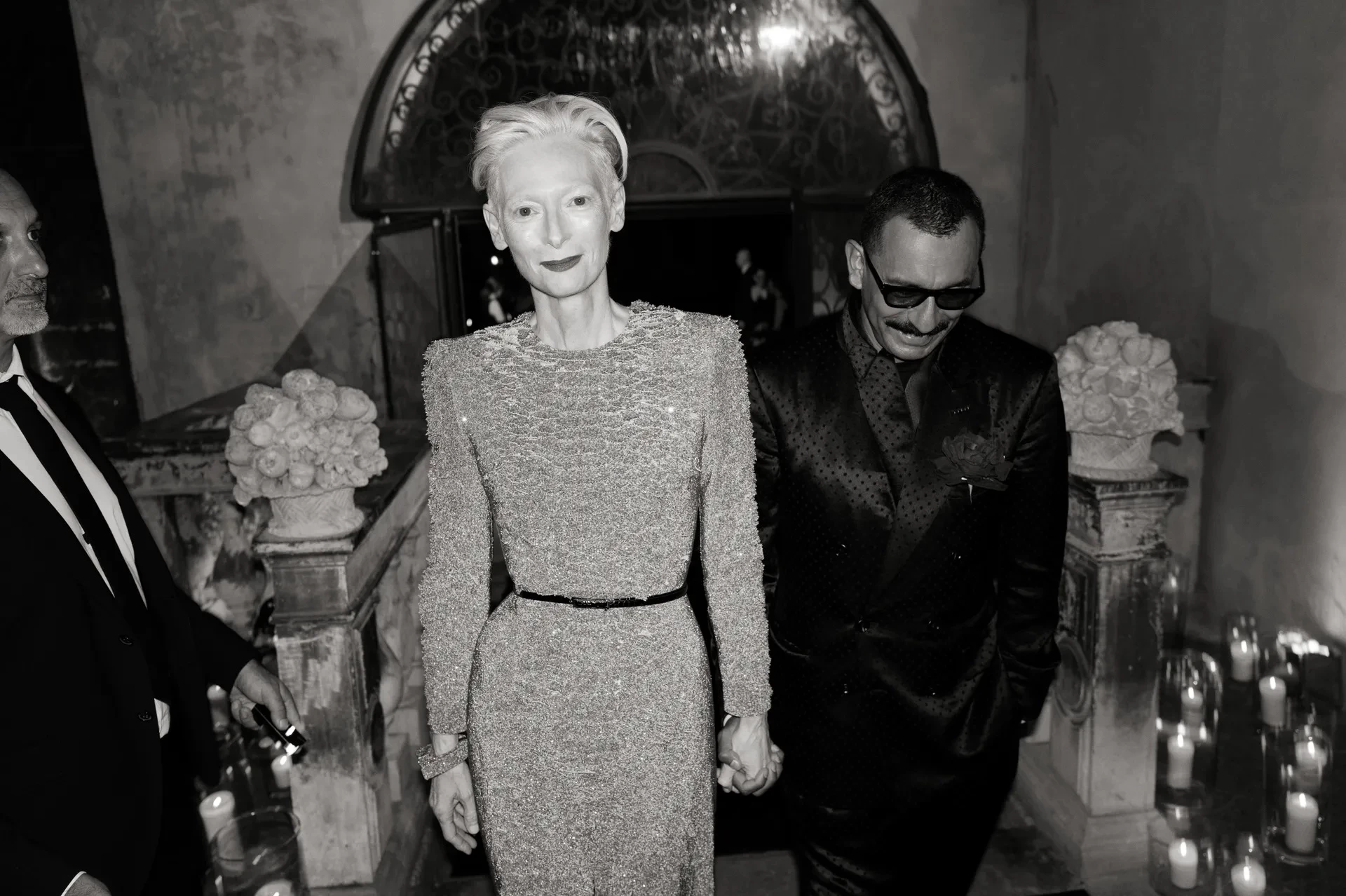 Посеред свята слово взяв Гайдер Акерман і виголосив зворушливу промову: "Я не люблю говорити, але зі мною моя родина та друзі, і це для мене дуже багато значить. Це моя перша кампанія для Tom Ford Beauty, і я почуваюся благословенним. Тільда ​​є моїм другом вже понад 30 років, і мати можливість робити це разом — досягти чогось більшого, ніж дружба — це неймовірне щастя. Тільда ​​була вірна мені все моє життя, і я не можу висловити, як сильно вона мене надихає, провокує, непокоїть і як сильно я її люблю". Акторка відреагувала на ці слова не менш емоційно. Вона подякувала старому другу за віру в неї і за цю дружбу вже стільки років поспіль. А далі подали ще горілки, і почалися танці до ранку.