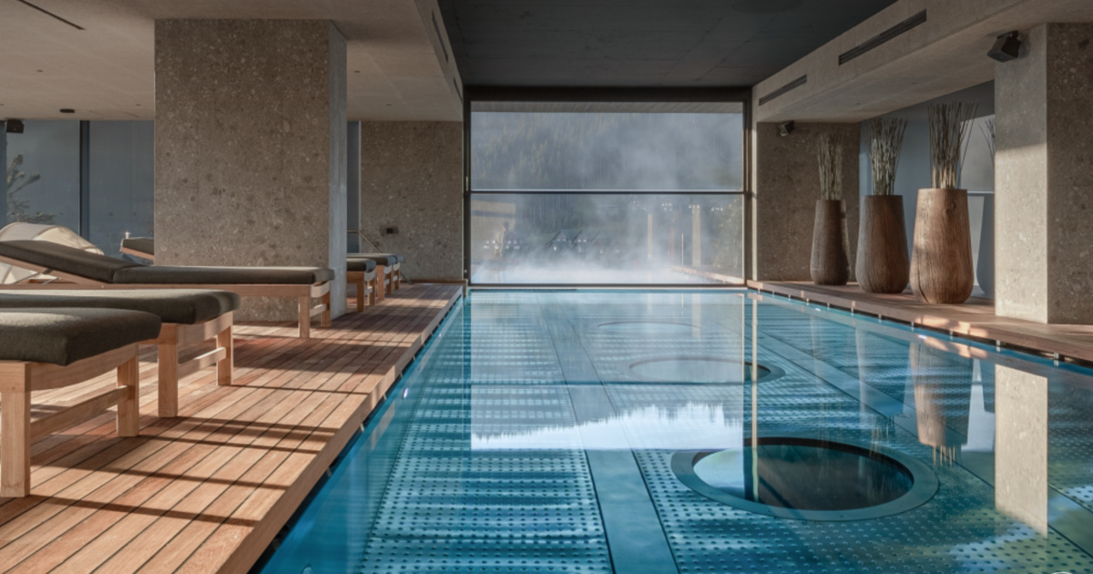 Басейн на даху буковельського готелю Hay (у перекладі з англійської "сіно") архітектори київського дизайн-бюро YOD Group спроєктували так, щоб він починався в приміщенні й виходив назовні, відкриваючи краєвид на гори. Захоплений подих тут приємно перевести у фірмовій сінній лазні. Після — раджу масаж і глибоке розслаблення на кушетці для флоатингу, що дарує тілу відчуття невагомості.