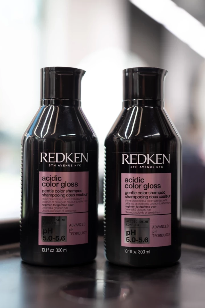 В лінії Redken Acidic Gloss з кислотним рН використано комплекс Асідік Шайн, який включає амінокислоти серин, аргінін, глутамінову кислоту, гліцерин та вітамін Е. Вона ущільнює кутикулу волосся, пригладжує лусочки і тим самим забезпечує здорове сяйво та гру світла на пасмах. Крім того, засоби колекції турбуються про колір волосся та захищають його від впливу ззовні – вигоряння, пилу, жорсткої води тощо.