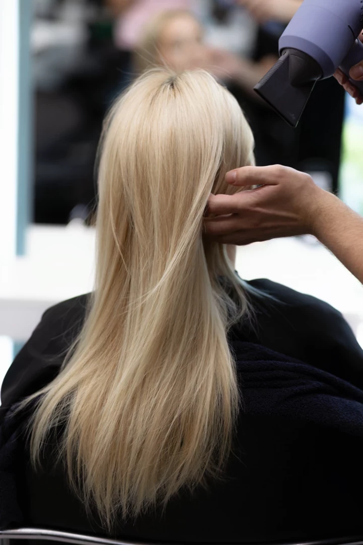 Спостерігати за тим, як поводиться волосся після процедури, – одне задоволення. Гладенькі, чудово зволожені пасма спускаються по спині Роксолани, Влад висушує їх, злегка допомагаючи собі струменями прохолодного повітря з фену. Гаряче тут дійсно не потрібне: жодного чітінгу, волосся має природній вигляд. Воно гладке, але без зайвого "салонного" лоску, за який ми іноді так не любимо професійні гарячі укладання.