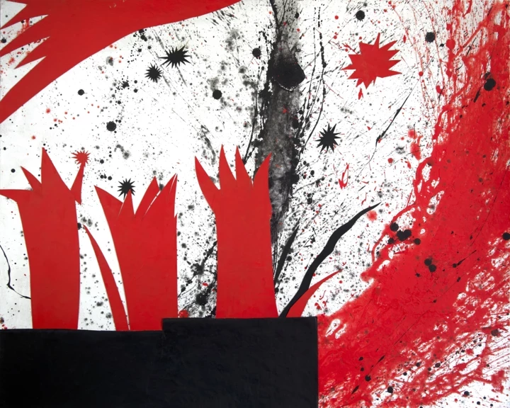 У галереї показують виставку Володимира Кузнцєва, яка містить серію робіт у техніки аплікації та велике панно-ширму. Абстрактні роботи осмислюють нашу реальність, адже перші ескізи з'явилися, коли від знайомої волонтерки Кузнецов отримав повідомлення про потребу у зборі коштів на турнікети — тоді й виникла ідея створити роботи, які можна було б розіграти за донати. Доволі прямі образи — струмінь, кров, вогонь, вода, течії, рух — поступово вилились у фігуративні та абстрактні композиції. В аплікаціях, як і у своїх настінних розписах, Кузнецов часто використовує три кольори — чорний, білий і червоний. Вирізані з паперу й картону твори, всупереч очікуваній витинанковій ефемерності, постають вагомими й матеріальними, розповідають про виставку кураторки Лізавета Герман та Марія Ланько.
