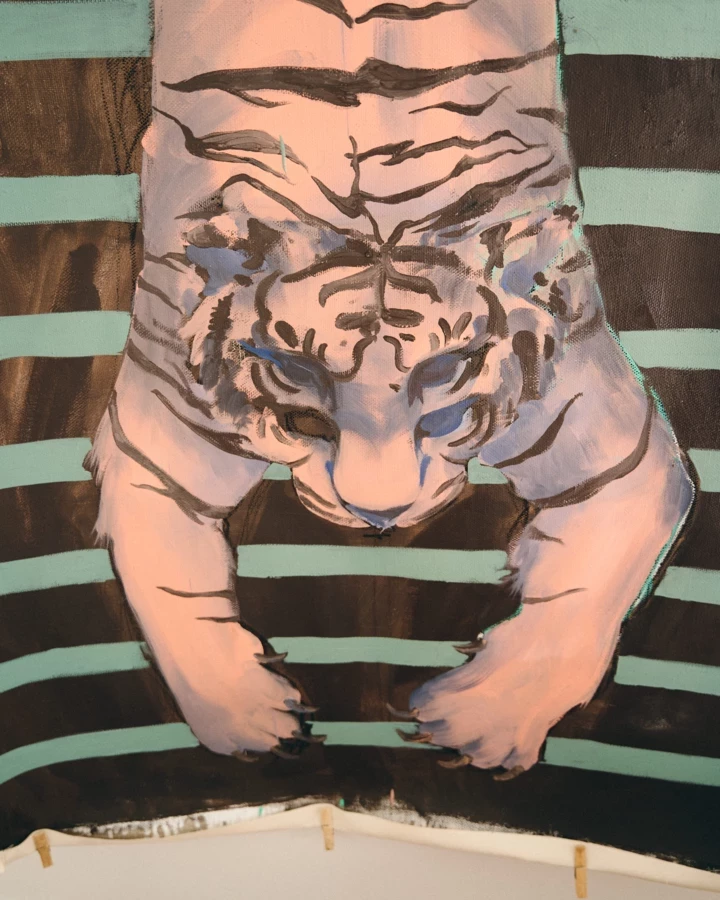"Кожна моя робота чи серія — це спроба відродити інший світ, — розповідає мисткиня в інтерв’ю Vogue Ukraine. — Я уявляю образ, персонажа чи предмет, і він починає жити ще до того, як я беруся за матеріал. Форма реалізації для мене другорядна: я обираю те, що найправдивіше в конкретний момент — живопис чи текстиль. Мені близька позитивна наївність: мої роботи апелюють до дитячої щирості, що перегукується з японською естетикою каваї, де "миловидість" стає емоційною стратегією".