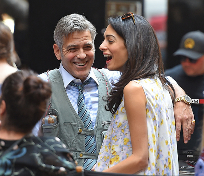 Работу 53-летний Клуни успешно совмещает с личной жизнью: прямо на съемочной площадке его навещает супруга Амаль Клуни – видимо, для занятой пары это единственная возможность побыть вместе. За две недели съемок миссис Клуни успела дважды побывать на площадке. Причем в первый раз прибыла в гости к супругу не одна, а вместе со своим братом и любимыми питомцами Клуни – двумя спаниелями, одного из которых в 2010 году актер взял из приюта, а второго паре подарили на свадьбу, состоявшуюся в прошлом году в Венеции.