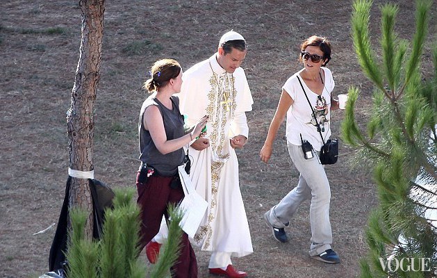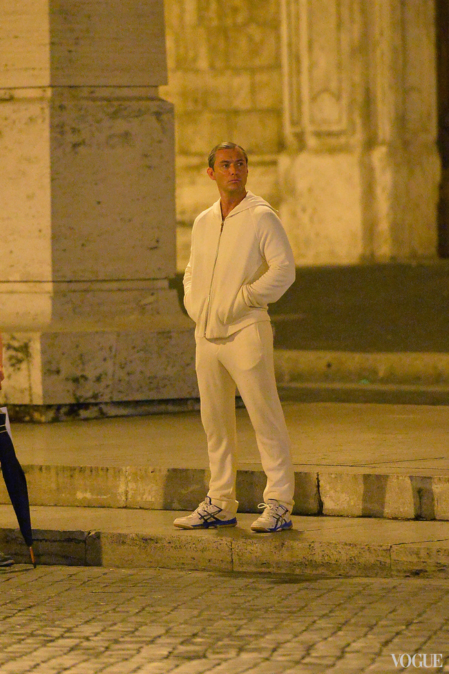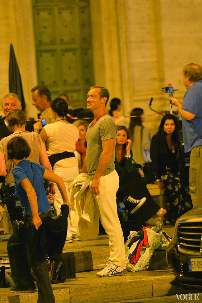 В распоряжении итальянца Соррентино на съемках практически весь Рим со всеми его достопримечательностями. Так, на днях Джуд Лоу был замечен на съемках в Ватикане, прямо возле Собора Святого Петра, а также на территории Виллы Медичи. В Вечном городе сейчас +30, но работа вынуждает британского актера разгуливать по городу в белоснежной рясе. Вместе с Лоу в сериале снимается знаменитая американская актриса Дайан Китон – она играет одну из монахинь.