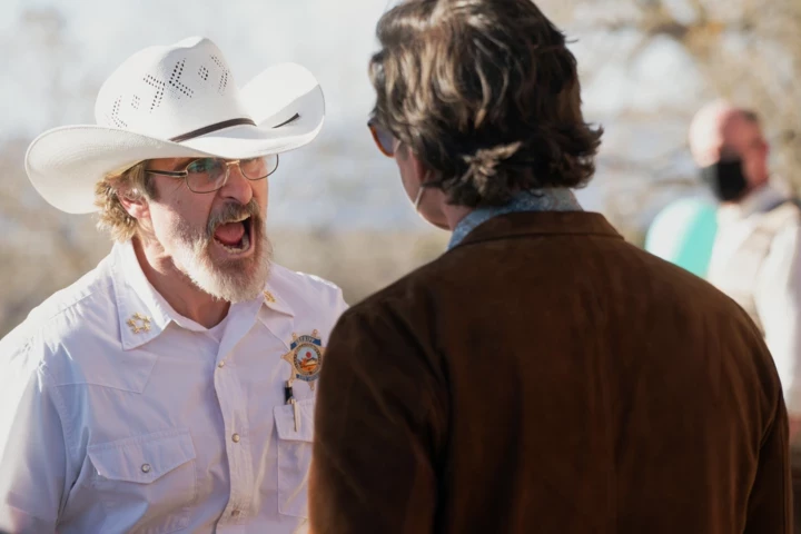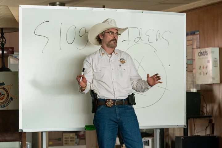 "Еддінгтон" Арі Астера – іронічна картини про вигадане містечко, яке божеволіє в часи ковіду. Події відбуваються в 2020 році у штаті Нью-Мексико. Один із небагатьох, хто категорично відмовляється носити маску — шериф Джо (Гоакін Фенікс), який, здавалося б, має стежити за правилами маскувального режиму, але замість цього зайнятий зовсім іншим. Над ним тяжіє мер міста Тед Грація (Педро Паскаль) — відомий ліберальний красень з підозріло доброзичливим поглядом. Після кожного спілкування з мером, Джо відчуває себе приниженим і, після чергової сутички, приймає імпульсивне рішення балотуватися в мери, у своїй промокампанії фактично заперечуючи існування пандемії.