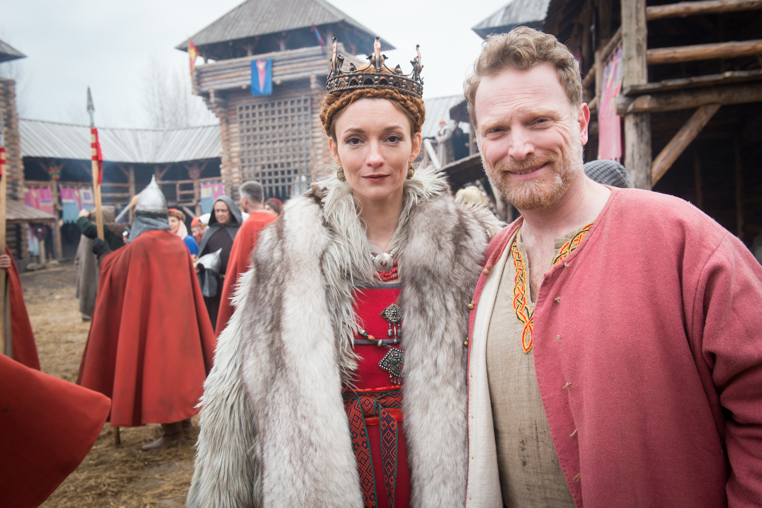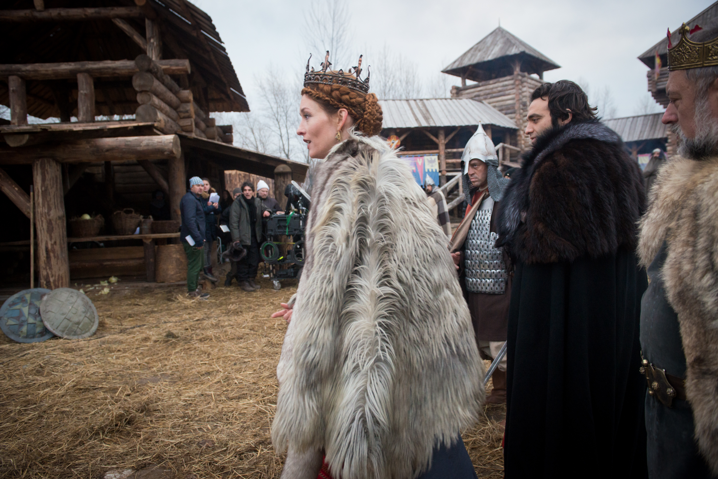 Одри Марне"Полина" рассказывает историю девочки, которая отправляется на поиски правды о своей семье в волшебное путешествие. Сейчас команда как раз снимает путешествие Полины в вымышленные страны: работают над сценой "деревня викингов", и большинство актеров одеты в средневековые наряды. 35-летней Одри Марне, которая принимала участие в показах и рекламных комапниях ведущих домов моды - Marc Jacobs, Chanel, Versace, Valentino, YSL, Dior, Balmain – образ королевы и все его атрибуты очень к лицу: и меха, и крупные косы, и корона.