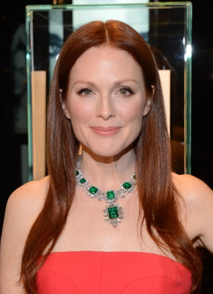 В 2009 рыжеволосая американка Джулианна Мур стала лицом новой коллекции украшений Bvlgari. Решение оказалось очень правильным: крупные серьги грушевидной формы из колумбийского изумруда, которые представляла актриса, словно были созданы мастерами ювелирного дома специально для нее. С тех пор на всех главных событиях, Джулианна Мур появляется в основном в Bvlgari – особенно актрисе, которая достаточно сдержанна в нарядах, а в качестве укладки предпочитает собранные волосы, идут крупные яркие серьги. А в 2013 году на вечеринке, организованной ювелирным домом в честь Элизабет Тейлор, актриса появилась в таком же изумрудном колье, в котором в 60-е годы блистала Тейлор.