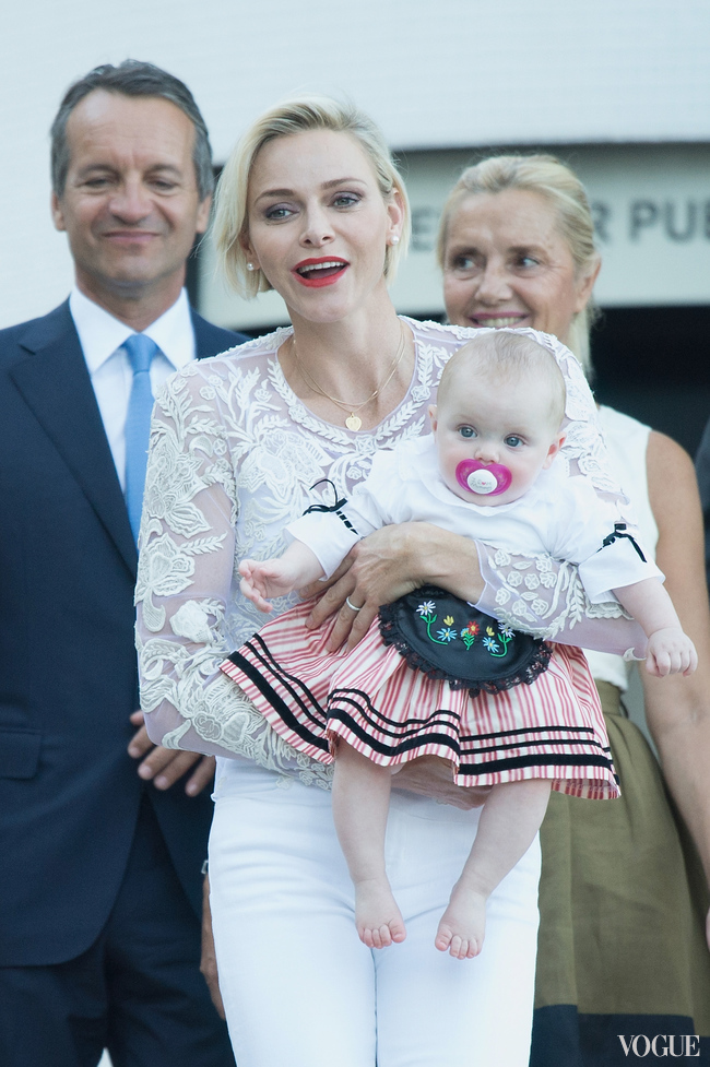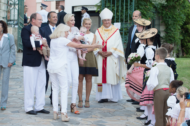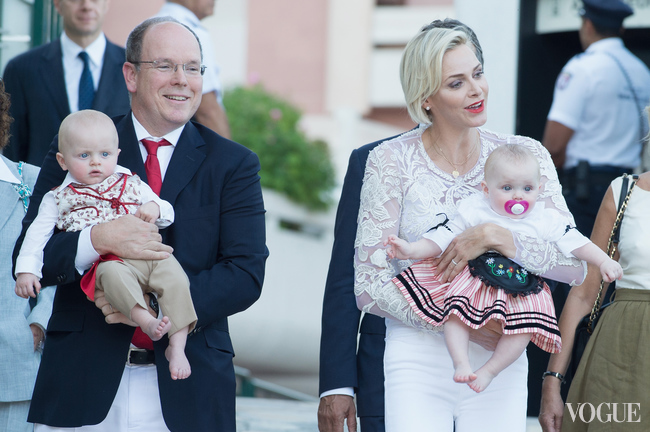 Внуки Грейс Келли и князя Ренье ІІІ, которые в декабре будут праздновать свою первую годовщину, на празднике были одеты в национальные костюмчики. Несмотря на свой возраст, они являются одними из самых важных людей в небольшом государстве – так, сын князя Альбера ІІ Жак или Его светлость принц Жак Оноре Ренье является наследным принцем и первым в очереди на трон Монако, а дочь Габриэлла Тереза Мария носит титул принцессы Монако и графини де Карладез.