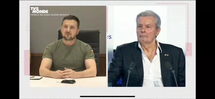 В межах запису програми Ален Делон також поспілкувався з Володимиром Зеленським. Розмова відбулась онлайн 23 вересня, цим записом у stories поділився президент України.