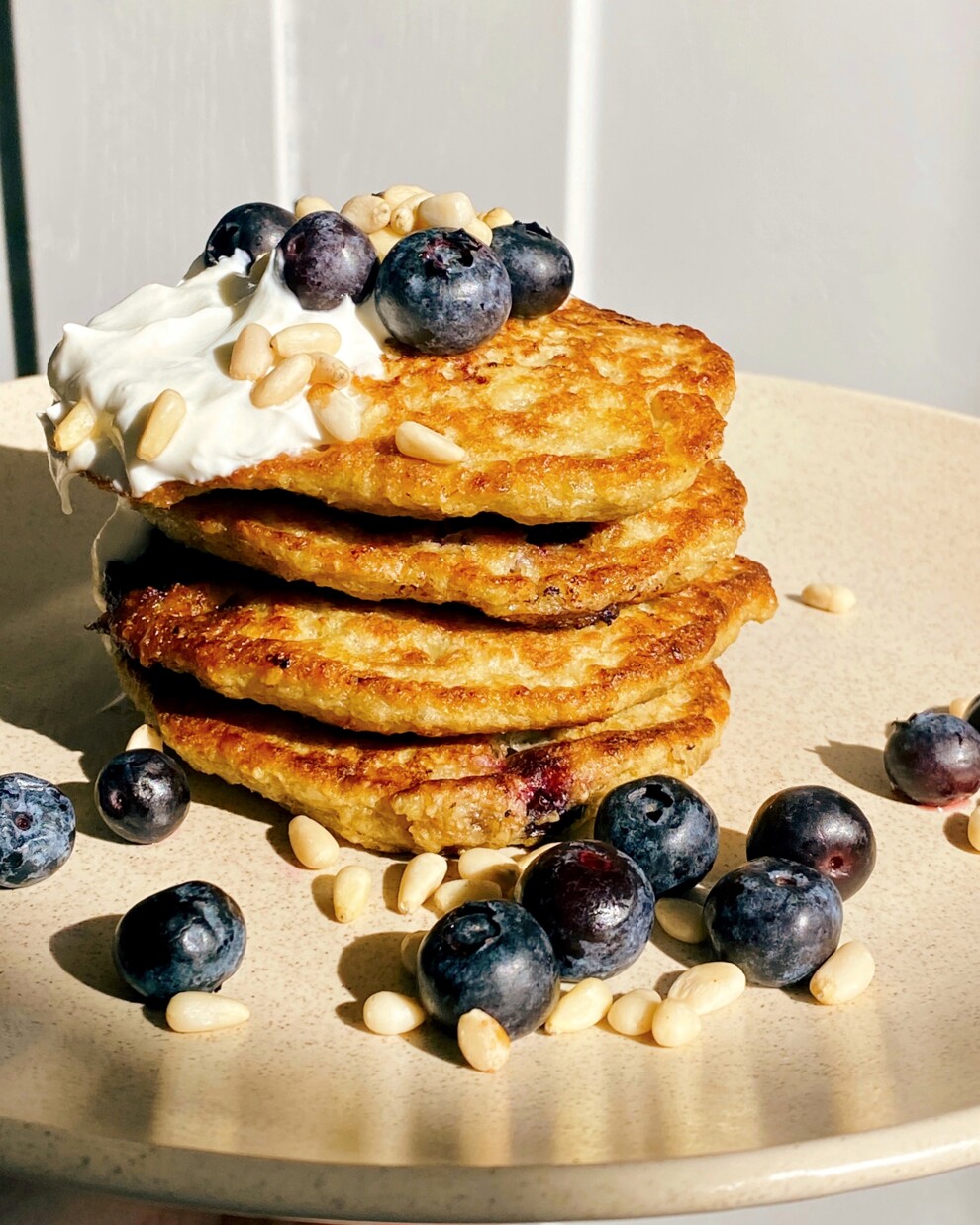 - На розігріту з оливковою олією пательню викладайте суміш. Обсмажуйте панкейки з обох боків до рум'яної скоринки.