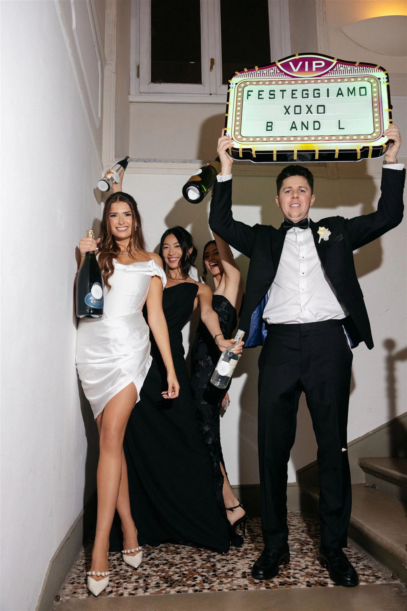"Моєю мрією було подарувати гостям унікальний досвід, який би занурив їх у казку, адже багато хто здійснив далеку подорож, щоб бути поруч із нами. Я прагнула, аби вони відчули нашу любов і водночас по-справжньому повеселилися", – пояснює Лорен. Так, у програмі, організацією якої займалася команда Distinctive Italy Weddings, була низка сюрпризів: гра саксофоніста під час вечері; сяйливі фонтани під час розрізання торта; подорож човнами між віллами; столи, названі на честь важливих для пари місць; персоналізовані картки зі спогадами для гостей. "Я дуже вдячна Rey Weddings за прекрасні відео нашого весілля. Те, як їм вдалося закарбувати моменти свята з висоти пташиного польоту, подарувало нам прекрасні знімки, які залишаться з нами назавжди".