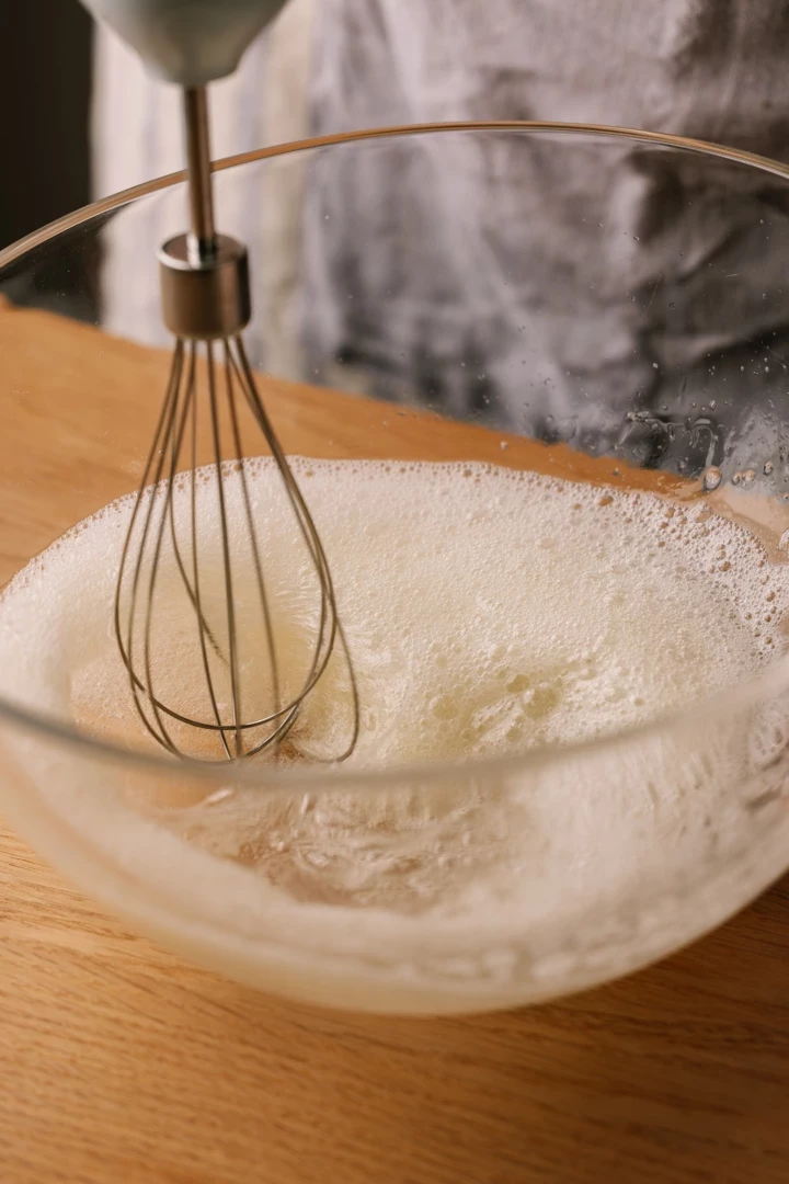 В окремій ємності збиваємо білки до густої однорідної текстури.