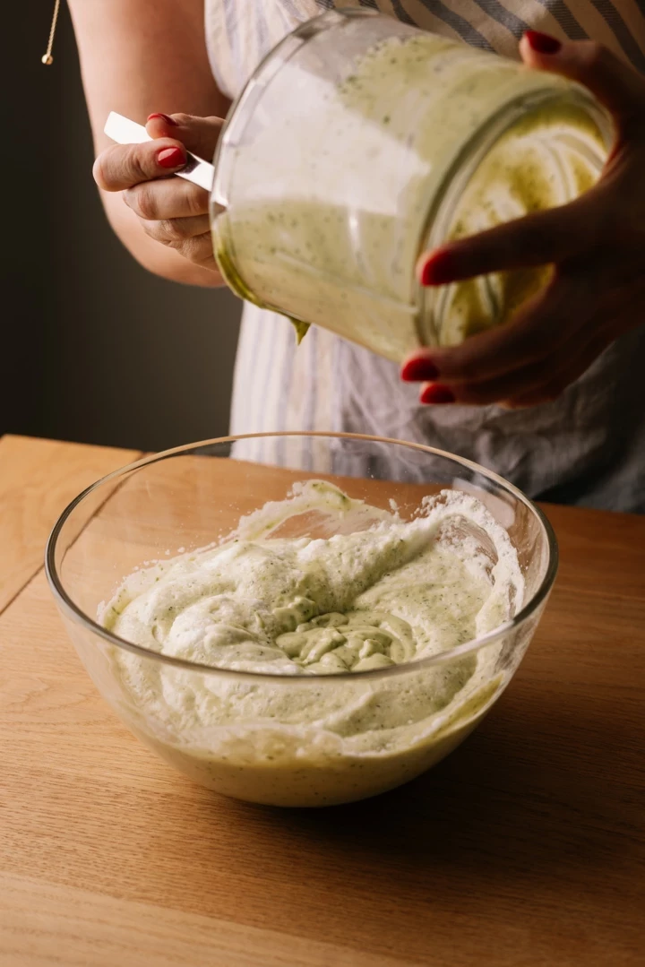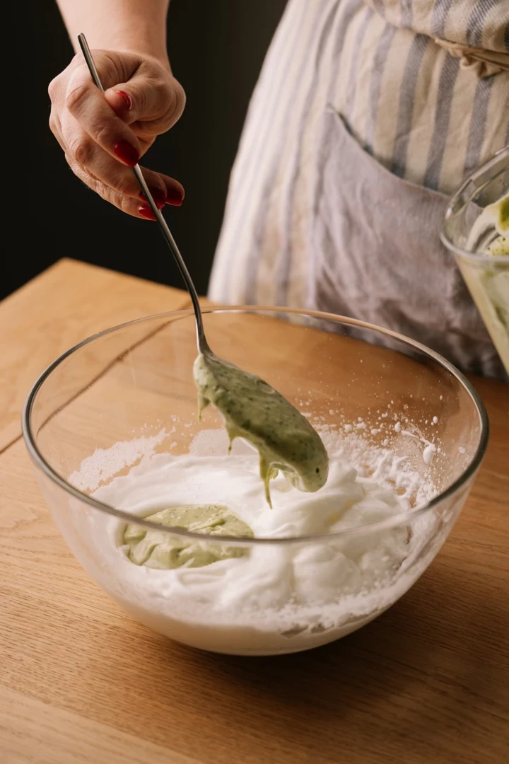 Дуже ніжно лопаточкою обʼєднуємо білки та аво-суміш.