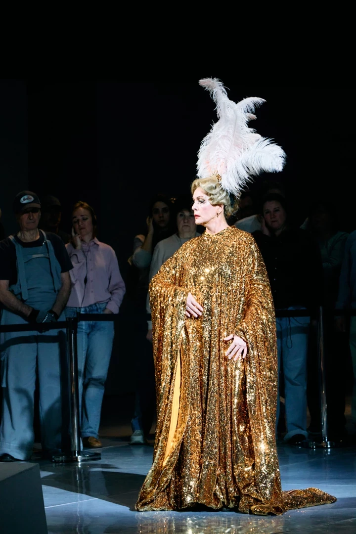 На фоні цього "сірого" інтер'єру абсолютним контрастом сприймається передостання сцена, в якій з'являється Голос матері (партію виконують Тетяна Пімінова, Алла Позняк та Наталя Кисла) — жінка в розкішній сукні в лелітках та головному уборі з пір'я на голові. Це образ матері Антонії, а ще — смерть, яка прийшла забрати дівчину й буквально огортає її своїми обіймами. Художниця костюмів Дарія Біла, дизайнерка бренду MY THEATRE by Dariia Bila, має великий досвід роботи в театрі: вісім років була головною художницею Дніпровської опери, співпрацює з трупою Freedom ballet, для якої створила костюми та декорації для популярних вистав Flambè і "Кабаре". У "Казках Гофмана" одну з найважливіших сцен вона вирішує бурлескно, яскраво і водночас пронизливо, вдягаючи свою героїню в блискуче вбрання, що заворужує й лякає.