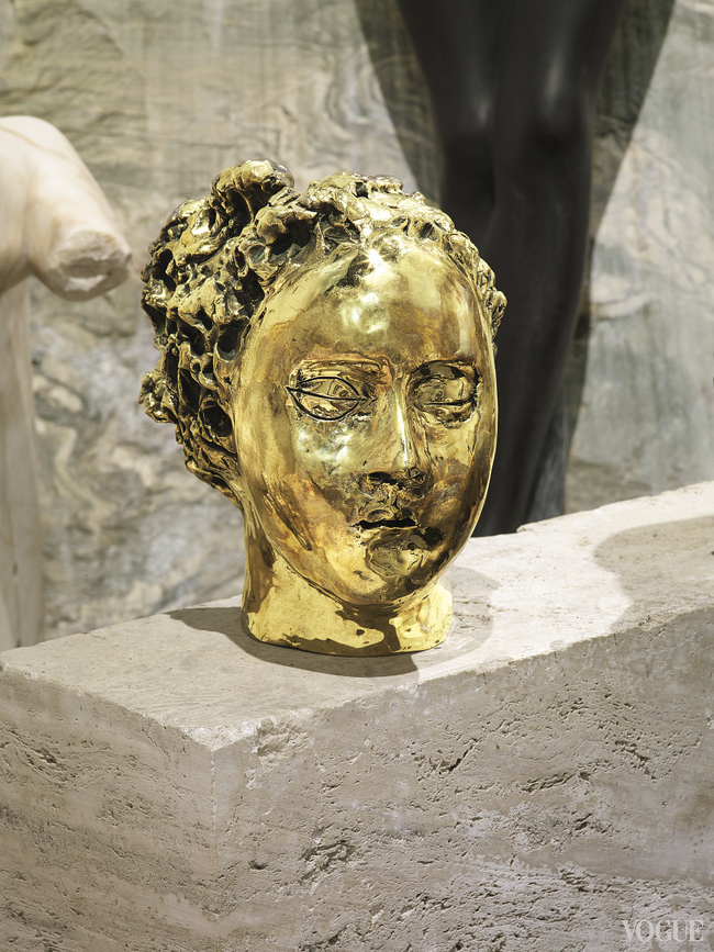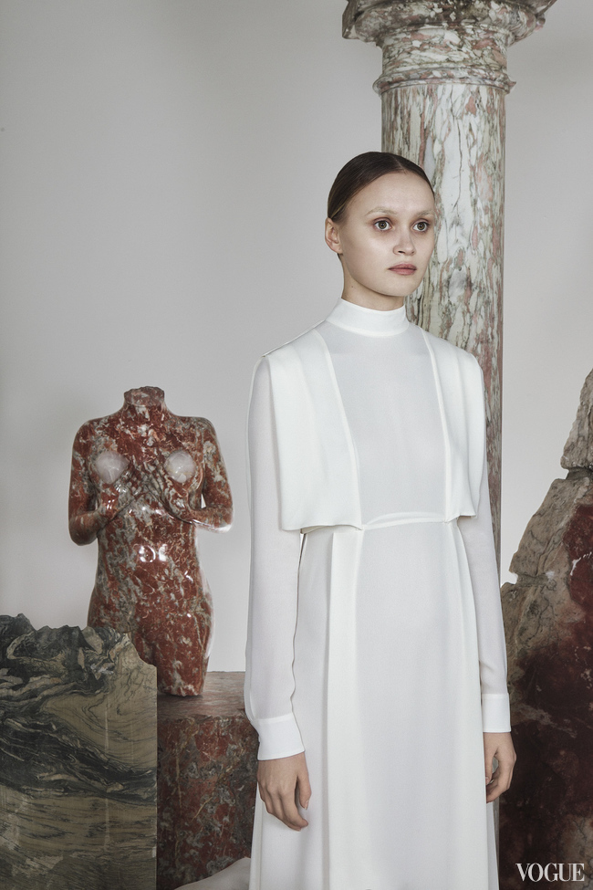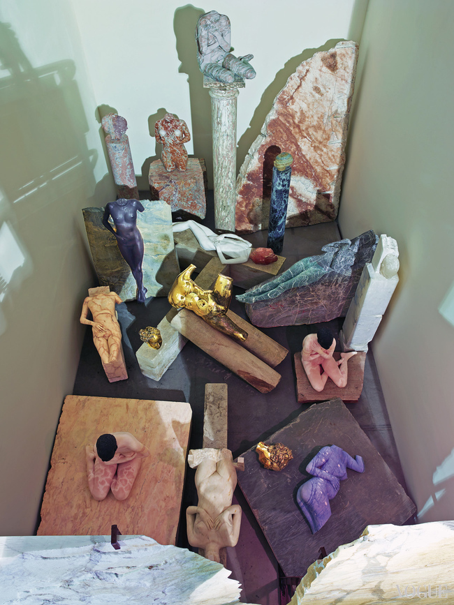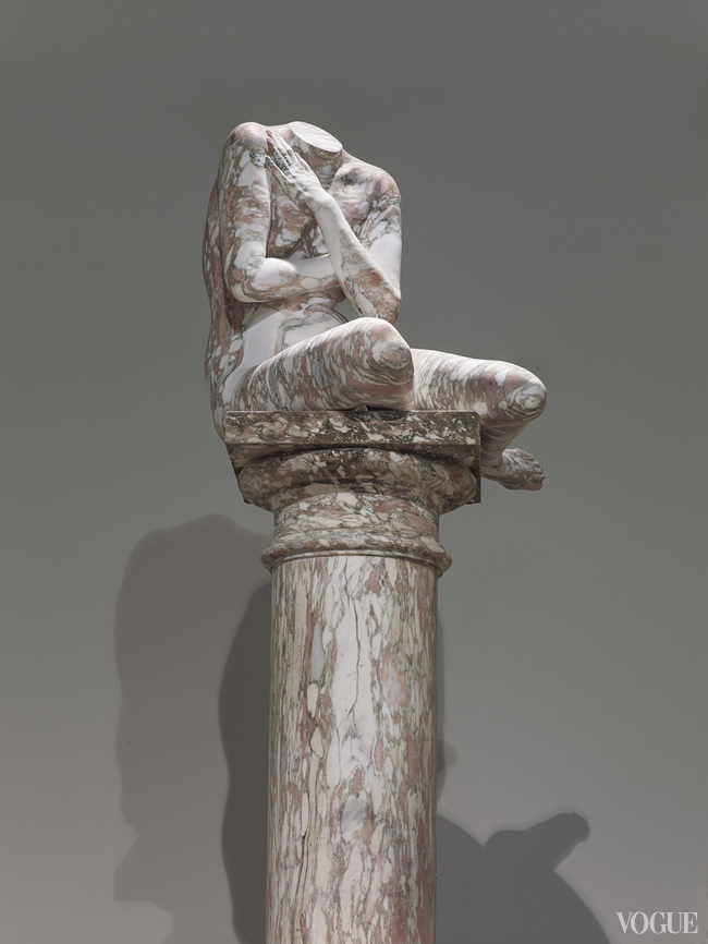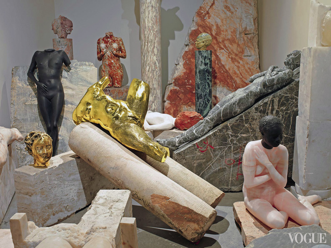 Для съемки украинского Vogue Бикрофт взяла за основу свою работу, которую представляет на нынешней Венецианской биеннале. Это первая полномасштабная инсталляция скульптурных руин, или "преступлений над мрамором"