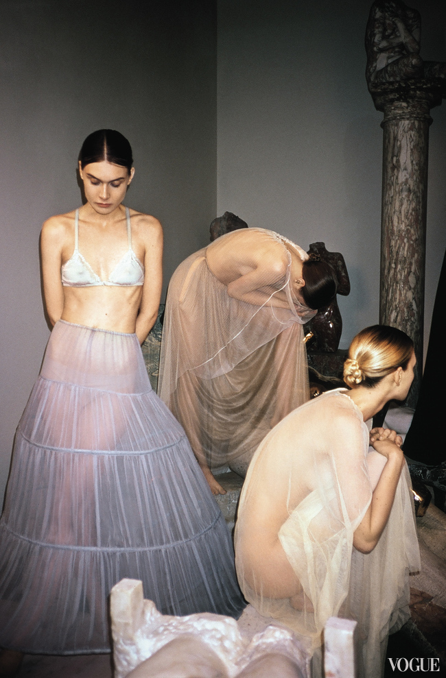 На моделях (слева направо): юбка из фатина, Cristina Bomba; юбка из фатина, топ из тюли, все – Cristina Bomba; платье из фатина и шелка, Cristina Bomba. Фото: Vanessa Beecroft