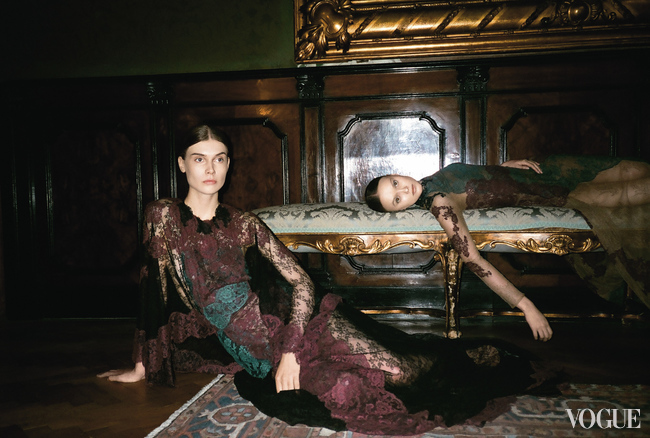 На моделях (слева направо): платье из кружева и тюля, архив Valentino; платье из кружева и тюля, архив Valentino. Фото: Vanessa Beecroft