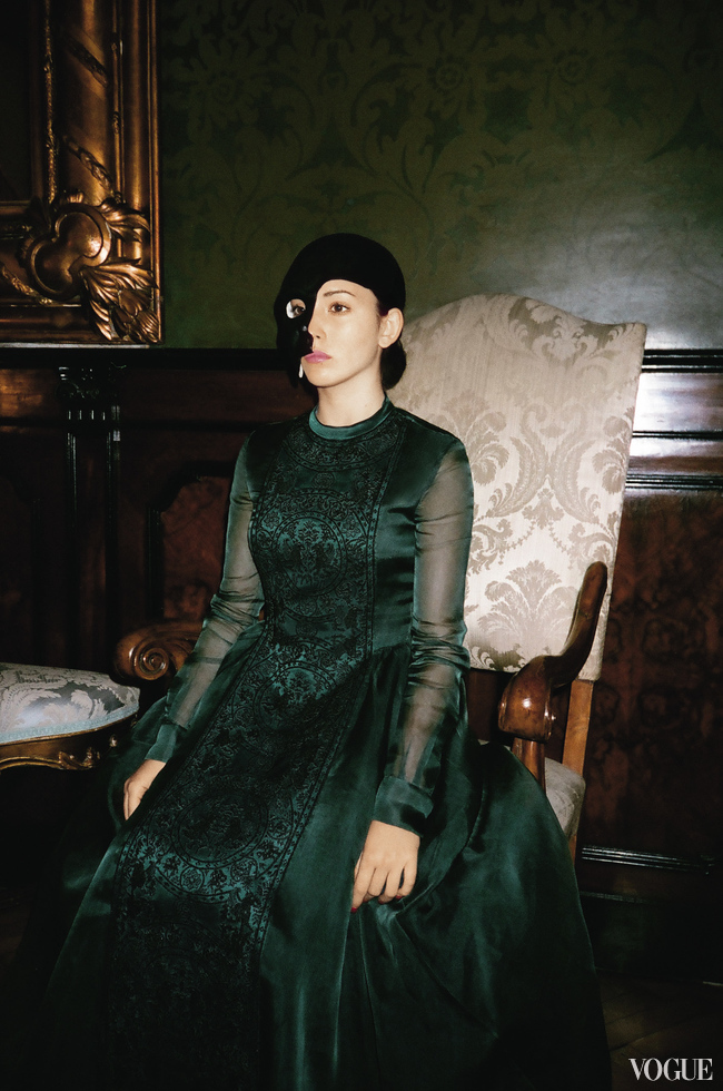 Платье из кружева и хлопка, архив Valentino; капюшон из бархата, Cristina Bomba. Фото: Vanessa Beecroft