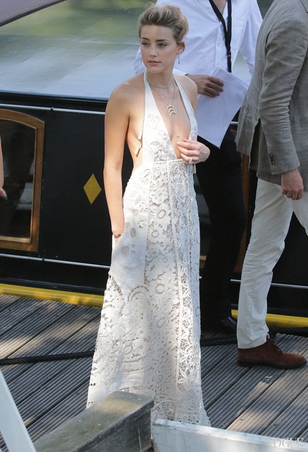 3. В Амстердаме жена Джонни Деппа продемонстрировала сразу три образа, поскольку съемочная группа решила осмотреть город и покататься на лодке по его окраинам. Для прогулки по воде Эмбер выбрала белоснежное кружевное платье Valentino из коллекции весна-лето 2015, идеально продемонстрировав, как можно применить актуальный летний тренд - образ мавки.