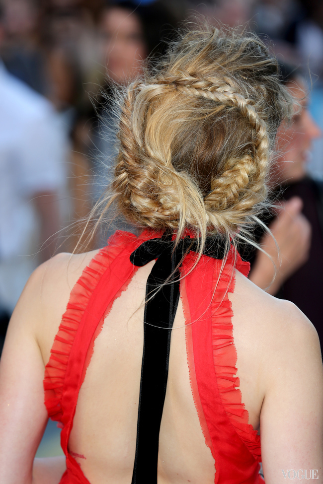 Пышное платье с воланами актриса опять обыграла с помощью прически – длинные волосы она заплела в косу-колосок и закрутила вокруг головы. Несмотря на то, что в таком образе Херд появилась на красной дорожке, такая укладка отлично подойдет и для повседневной жизни, и для фестивального дресс-кода.