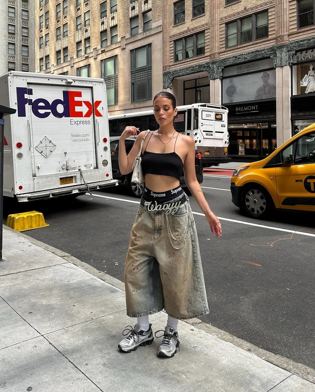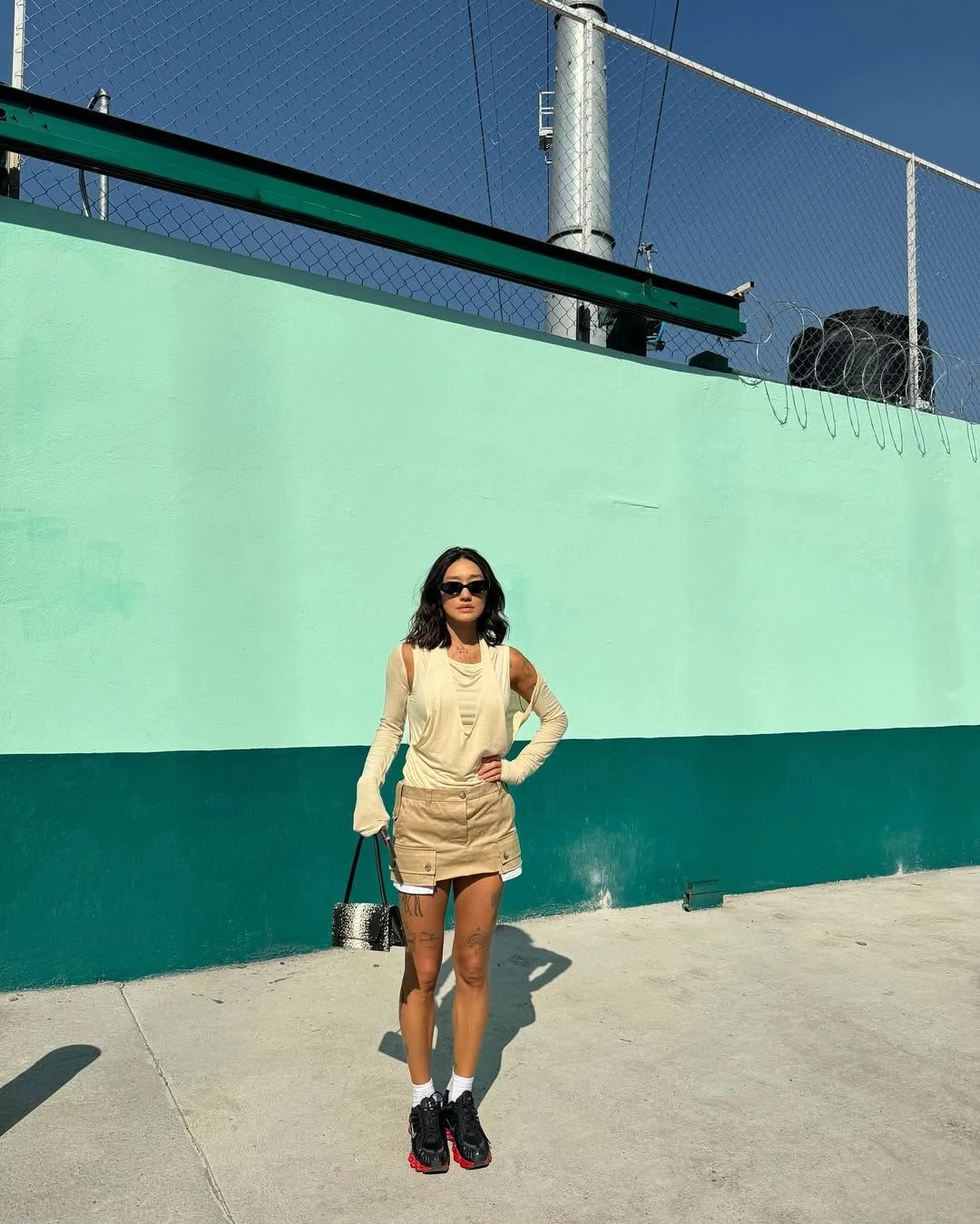 "Найвірусніші" кросівки у цьому списку – Nike Shox. Вони пережили пік популярності взимку 2024 року, і, як доводять модниці, їхнє правління ще не закінчилося. Пеггі Гу носить їх ледь не щодня, і разом із нею – десятки інфлуенсерів, які доповнюють цією моделлю свої образи, щоб додати спортивного акценту в дусі soccercore. Ця естетика, натхнена футболом, легко інтегрується в сезонний гардероб – через футболки улюблених команд або ж через взуття. Особливо актуальна зараз версія Total 90 Shox Magia – футуристичний римейк оригінальної моделі, що вже стала об’єктом бажання.