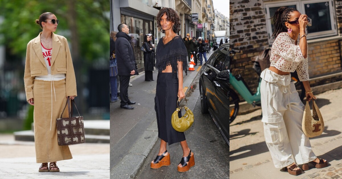 Поєднання протилежних стилів – завжди цікаве рішення. Цього літа streetstyle-зірки поєднують штани карго з дерев’яними сандалями, створюючи елегантні образи в стилі бохо. Ідеальне доповнення – топи кроше, які дозволяють витримати літню спеку.