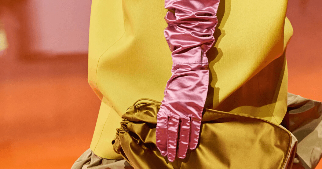 У колекціях сезону весна-літо 2026 ми бачили їх у Richard Quinn, Simone Rocha, Balenciaga та Prada. Richard Quinn та Simone Rocha віддали перевагу чорному: перші – у розкішному оксамиті в поєднанні з ефектними сукнями, а другі – з блискучими лелітками й в насичених кольорах. У Prada довгі рукавички були пастельних відтінків та з атласу, а у Balenciaga блискучі та шкіряні рукавички Пʼєрпаоло Піччолі поєднав у одному образі.