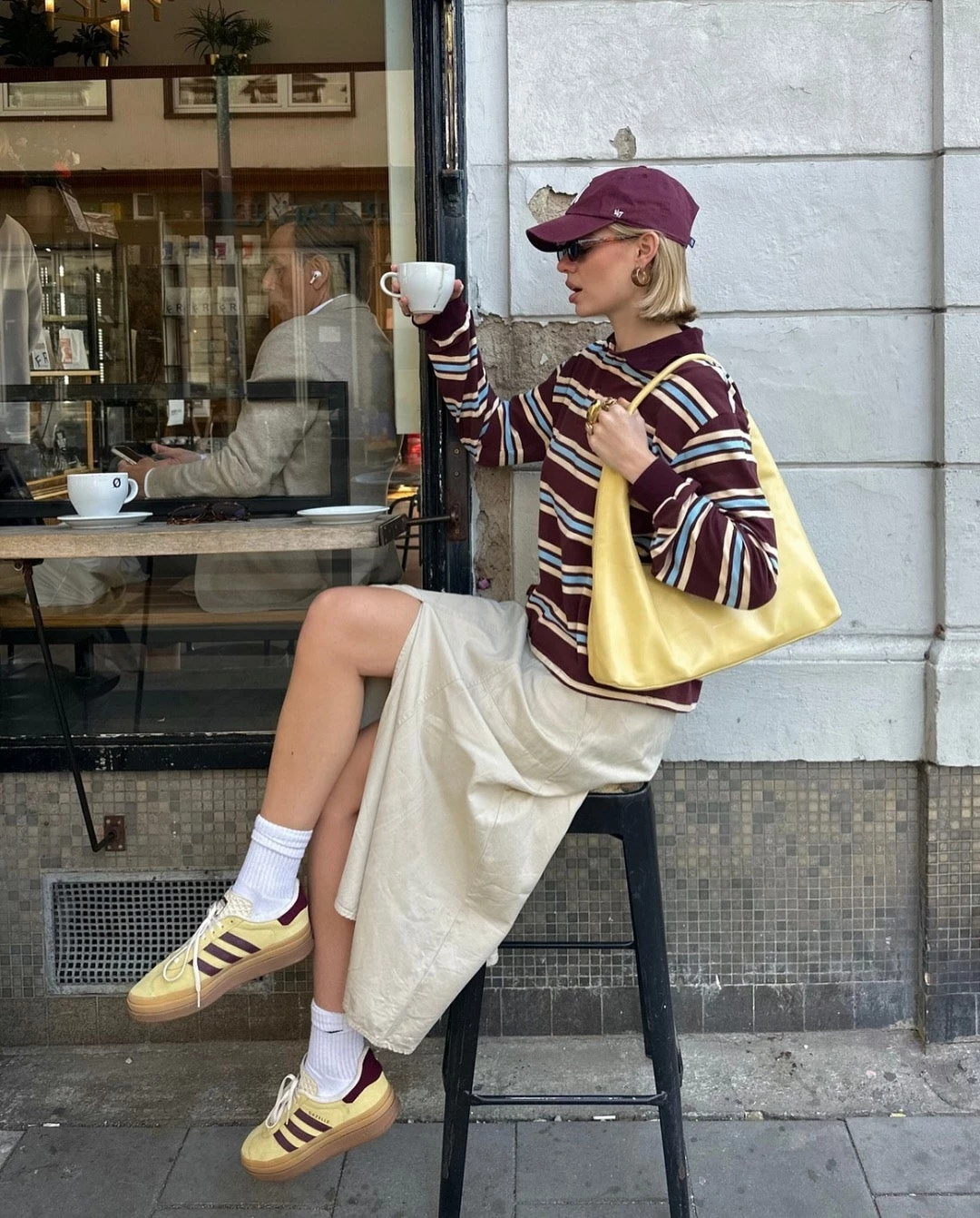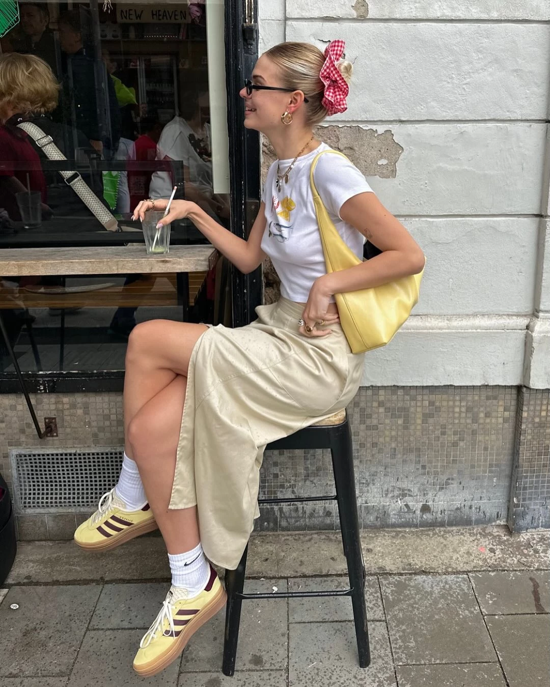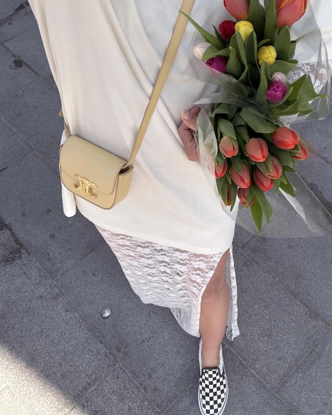 Сумка крос-боді – зручна та стильна. Наймодніші цього літа – варіанти зі шкіряним ременем чи золотим ланцюжком. Чудово пасує як до масляно-жовтого total look, так і до мереживних спідниць.