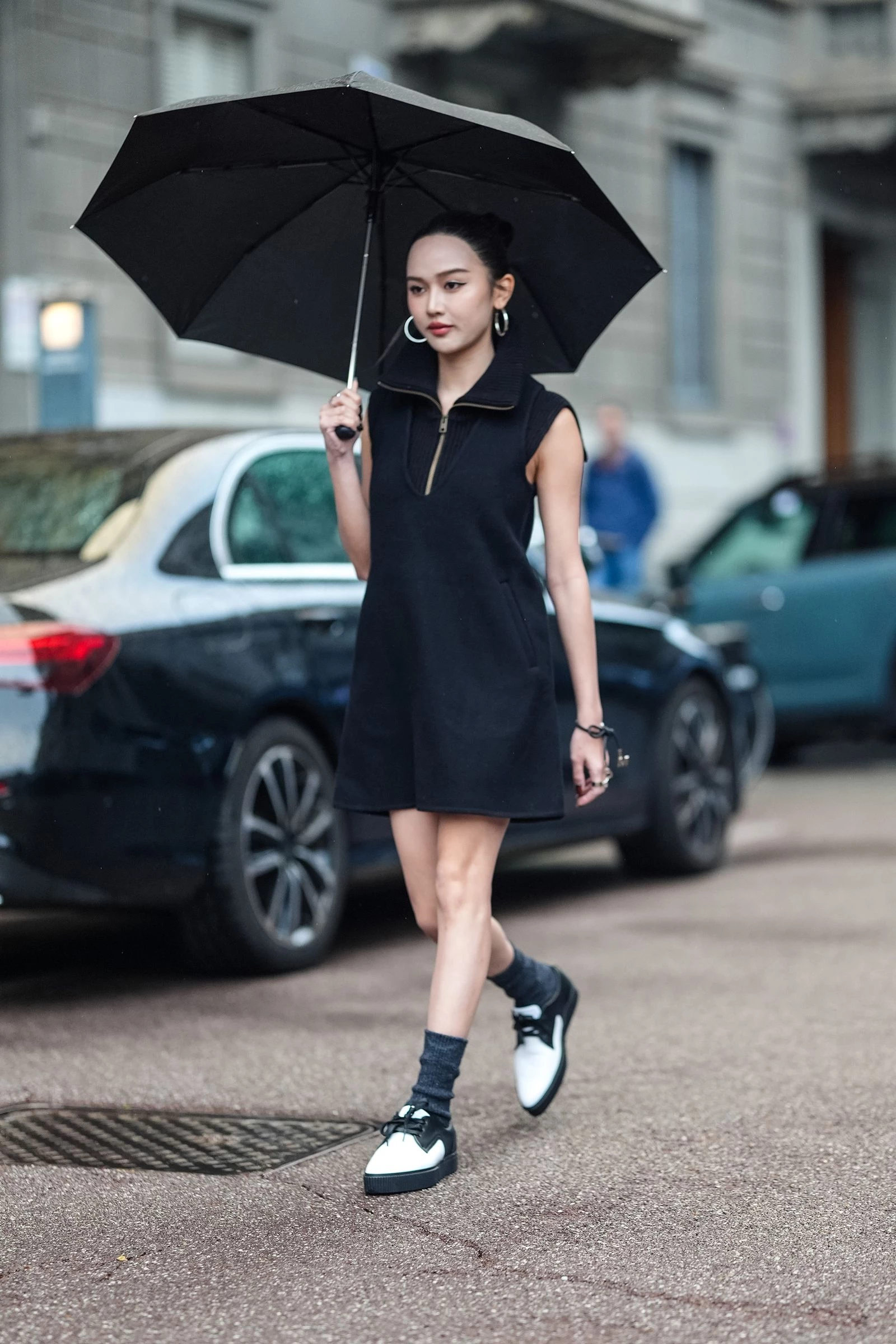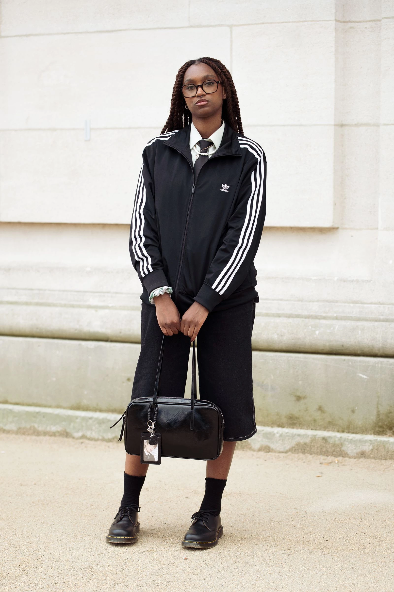 Немає нічого більш актуального сьогодні, ніж спортивний елемент у повсякденному образі. У цьому випадку – це не кросівки, а спортивна куртка, яка додає невимушеності та балансує вишуканість дербі.