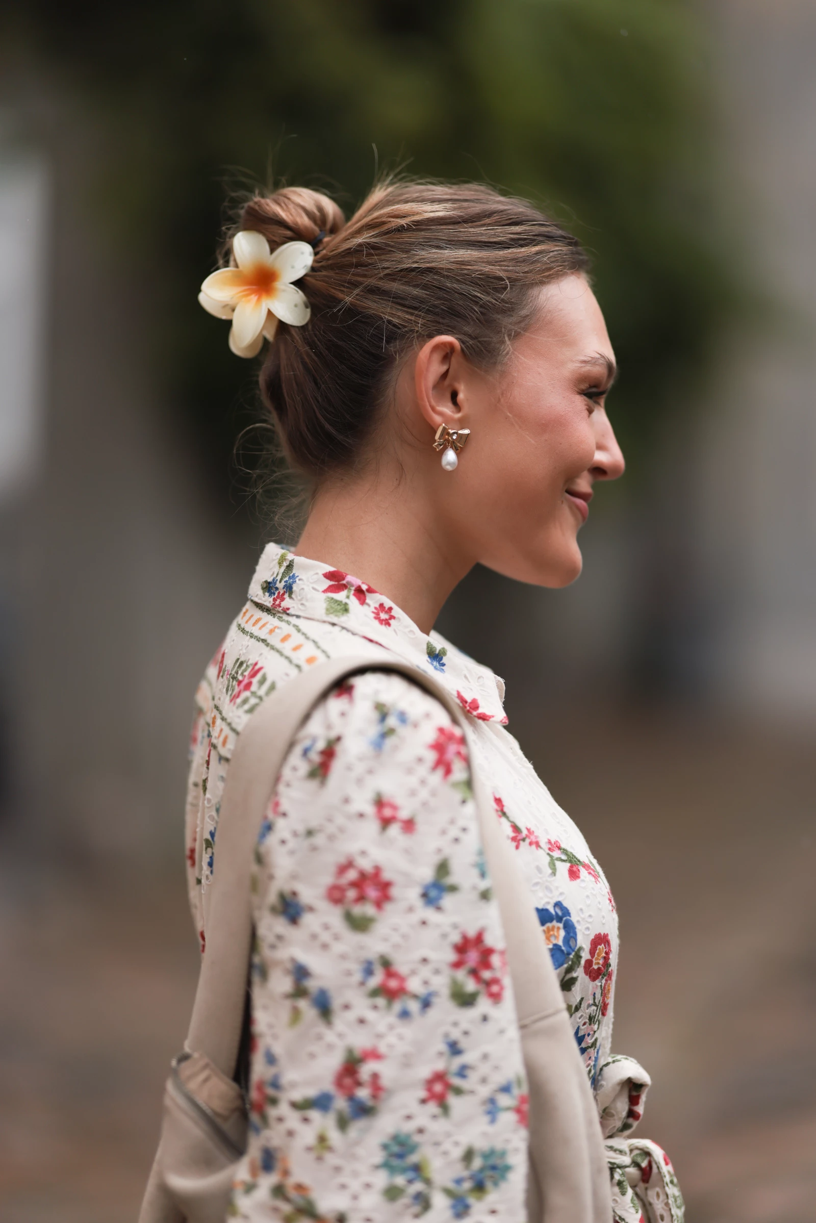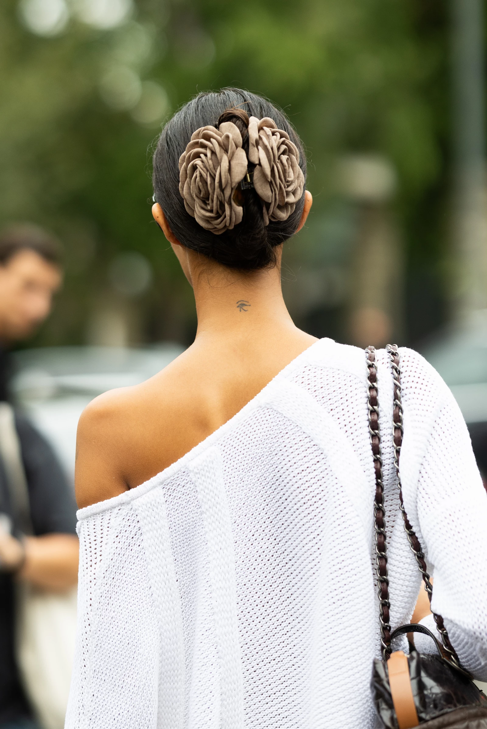 На вулицях модних столиць можна побачити й інші літні аксесуари: шпильки-квіти, scrunchie з тюлю чи мережива, бантики й декоративні заколки для кіс. Аби приборкати чубчик, it-girls використовують невидимки й маленькі шпильки – прості деталі, що додають функціональності та стилю водночас.