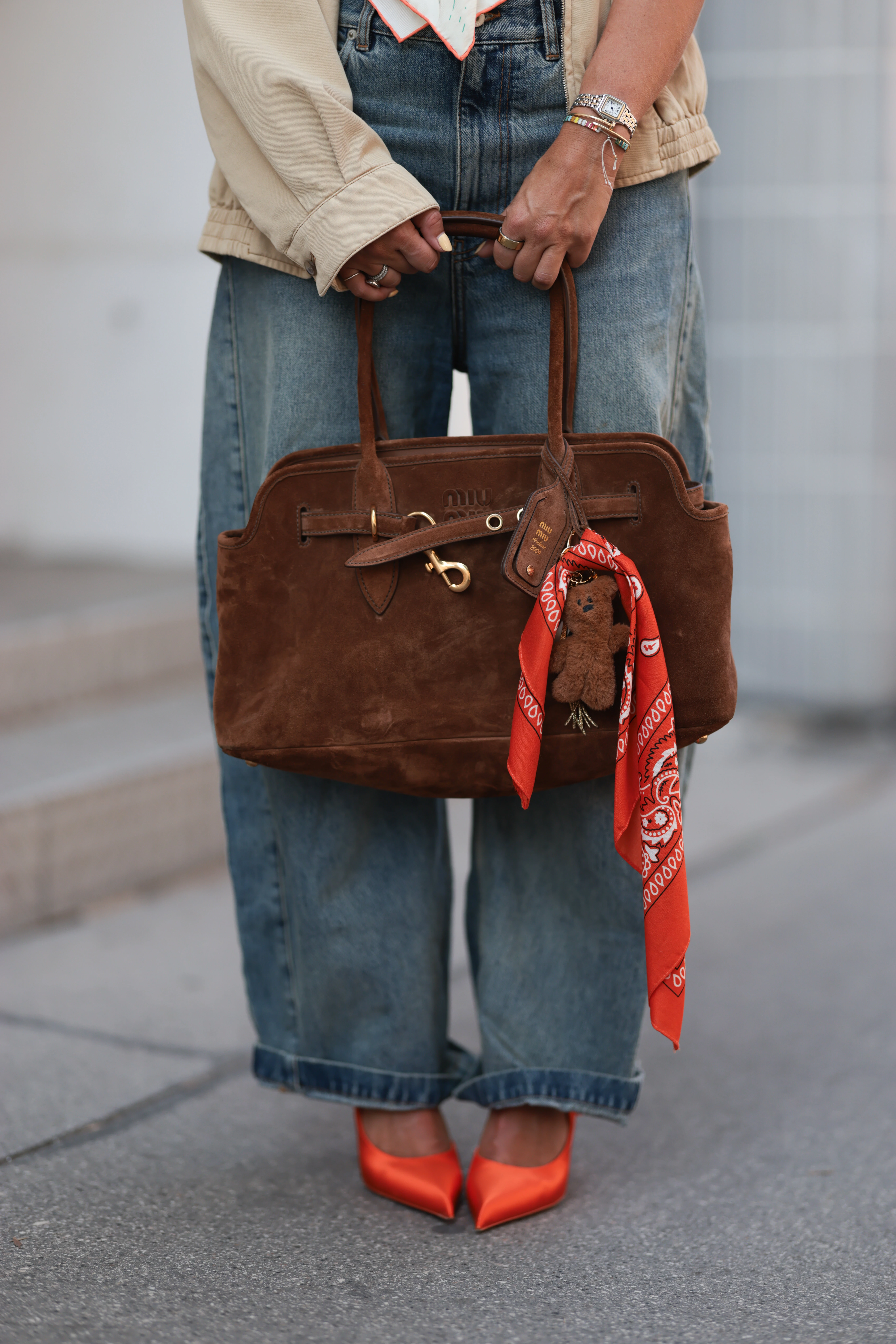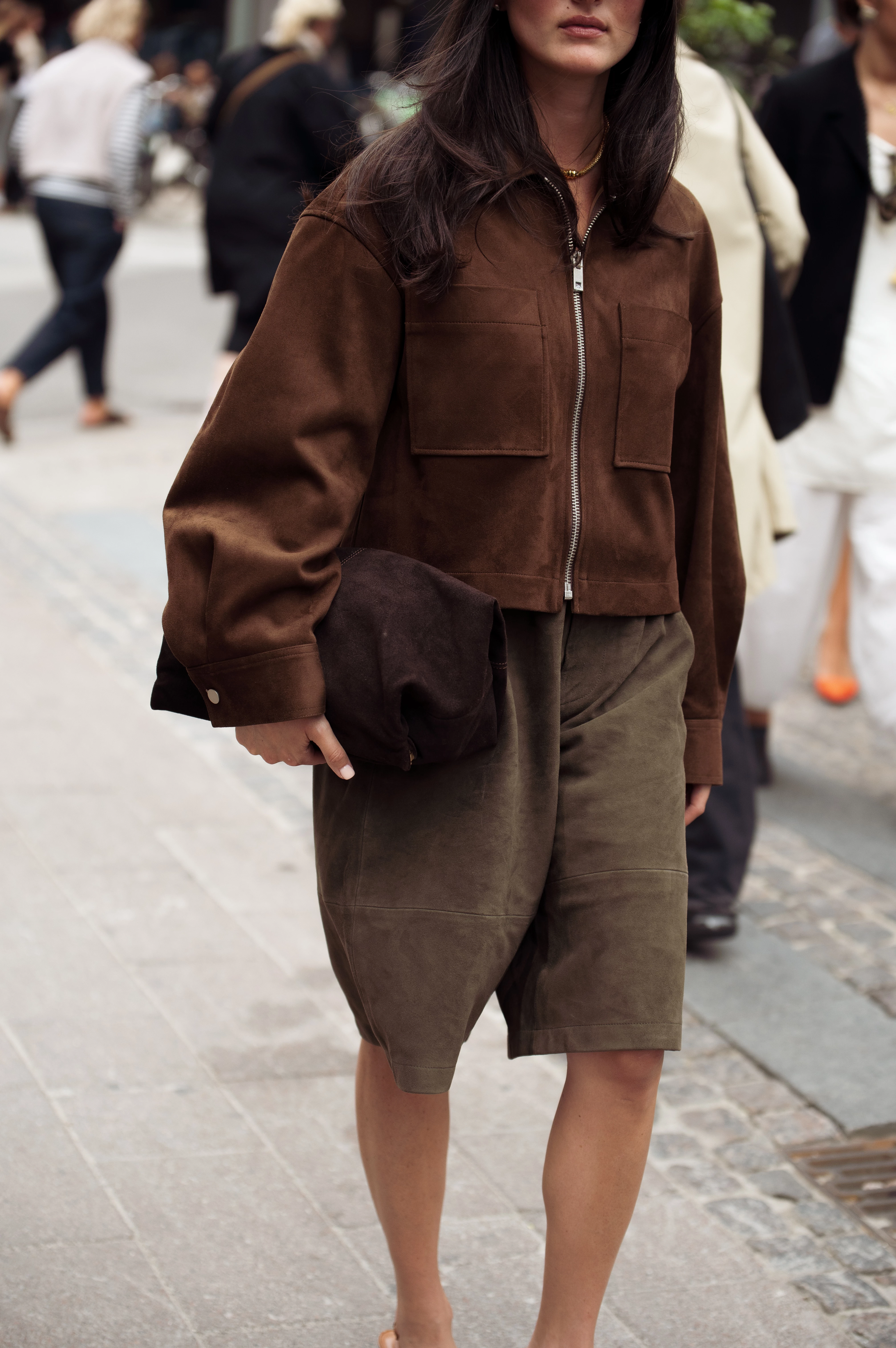 Шоколадна замшева сумка вже стала фаворитом модних інсайдерок. Її активно носили на початку серпня під час Тижня моди в Копенгагені, а серед прихильниць цього тренду — Кендалл Дженнер, Гейлі Бібер і Белла Гадід, які вже не раз встигли зробити таку сумку головним акцентом у своїх образах.