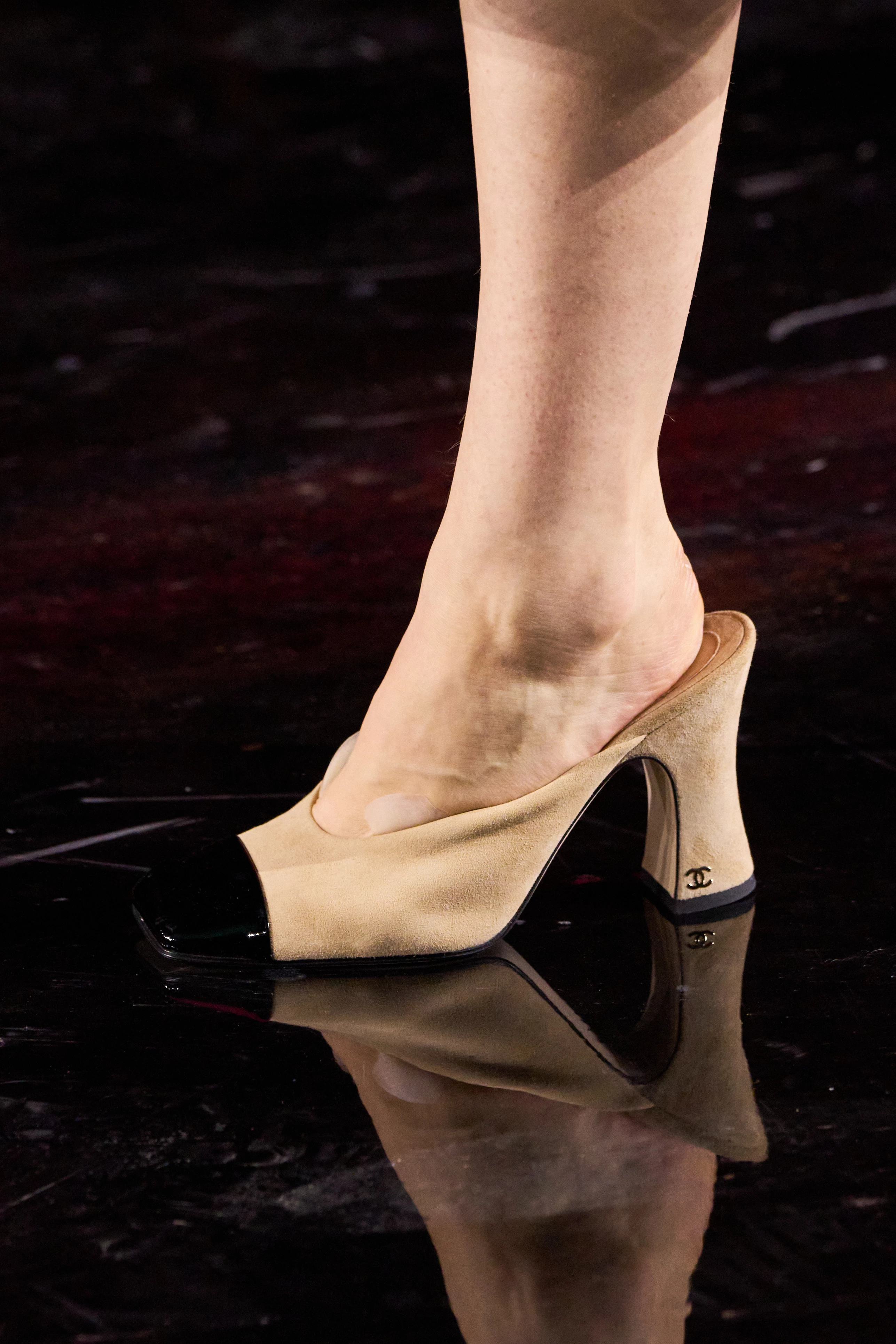 На тлі космічних декорацій новий показ Chanel став справжнім маніфестом руху й модерності. Двоколірні туфлі, дербі, мюлі та босоніжки з ремінцями задали тон колекції, у якій Матьє Блазі переосмислив культові архіви Дому. На подіумі знову з’явилися легендарні two-tone pumps, створені Коко Шанель у 1957 році. Тепер же, в оновленій інтерпретації, це взуття символізує початок нової епохи Chanel.