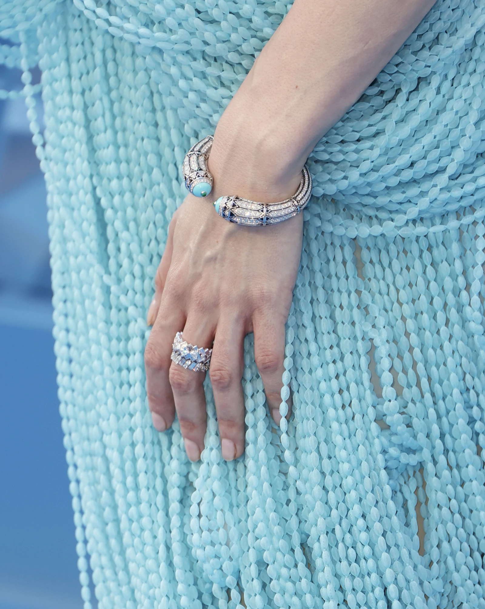 Влітку прикраси з бірюзою стають справжніми фаворитами – від намист і браслетів до сережок і кулонів у найрізноманітніших формах. У цьому камені є особлива енергетика: його відтінок балансує між синім і зеленим, а легкий білий відблиск дарує неповторне сяйво. Бірюза чудово гармоніює із засмаглою шкірою: камінь виглядає ще яскравіше й водночас підкреслює золотавий відтінок. Завдяки своїй світлій гамі він ніжно відбиває світло, підсвічує риси обличчя та робить їх виразнішими. Носити бірюзу влітку – це ніби мати при собі маленький фрагмент самої пори року. Вона ідеально поєднується з білими сукнями, лляними тканинами та природними матеріалами, однаково органічно доповнюючи як бохо-образи, так і вишукані ансамблі.