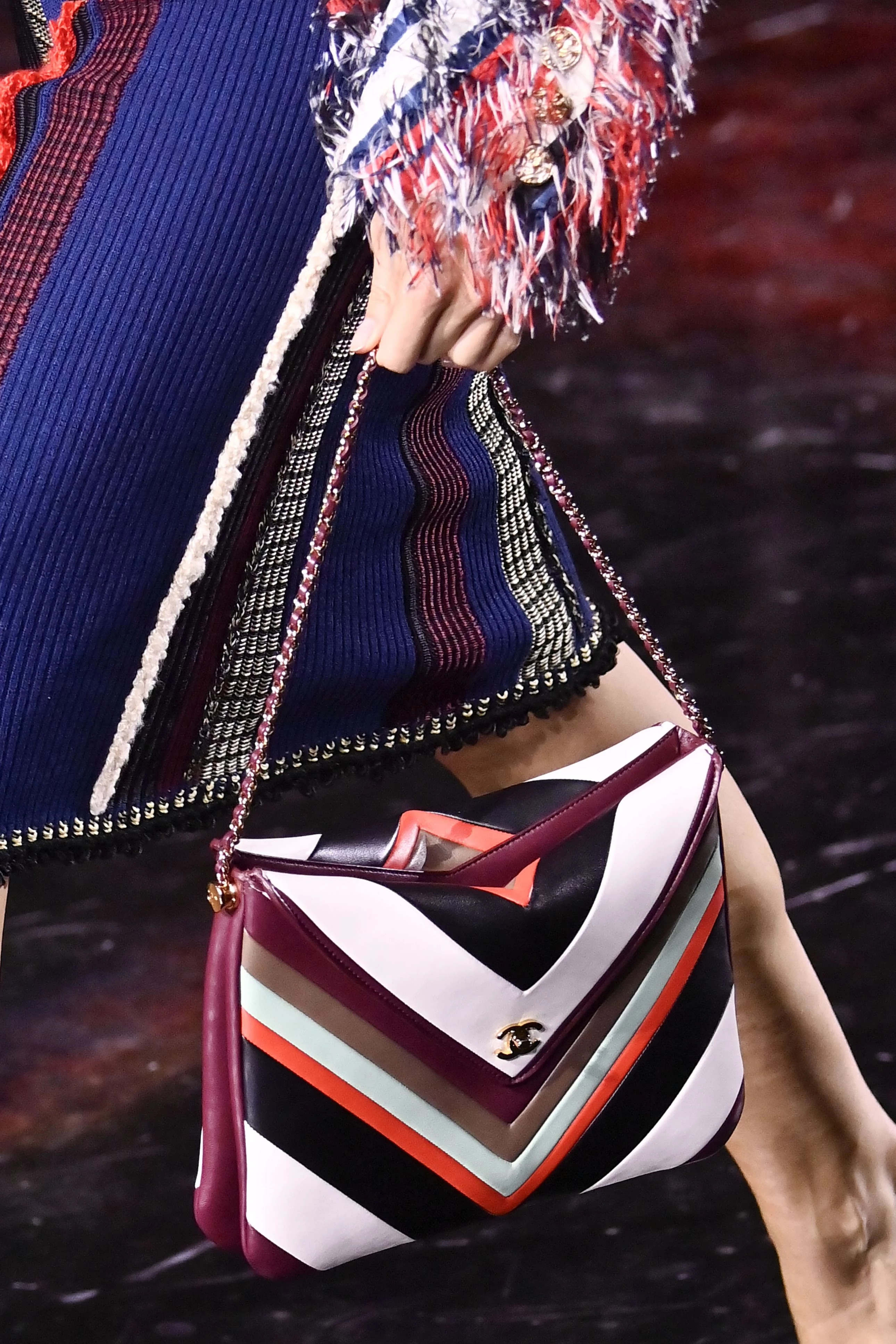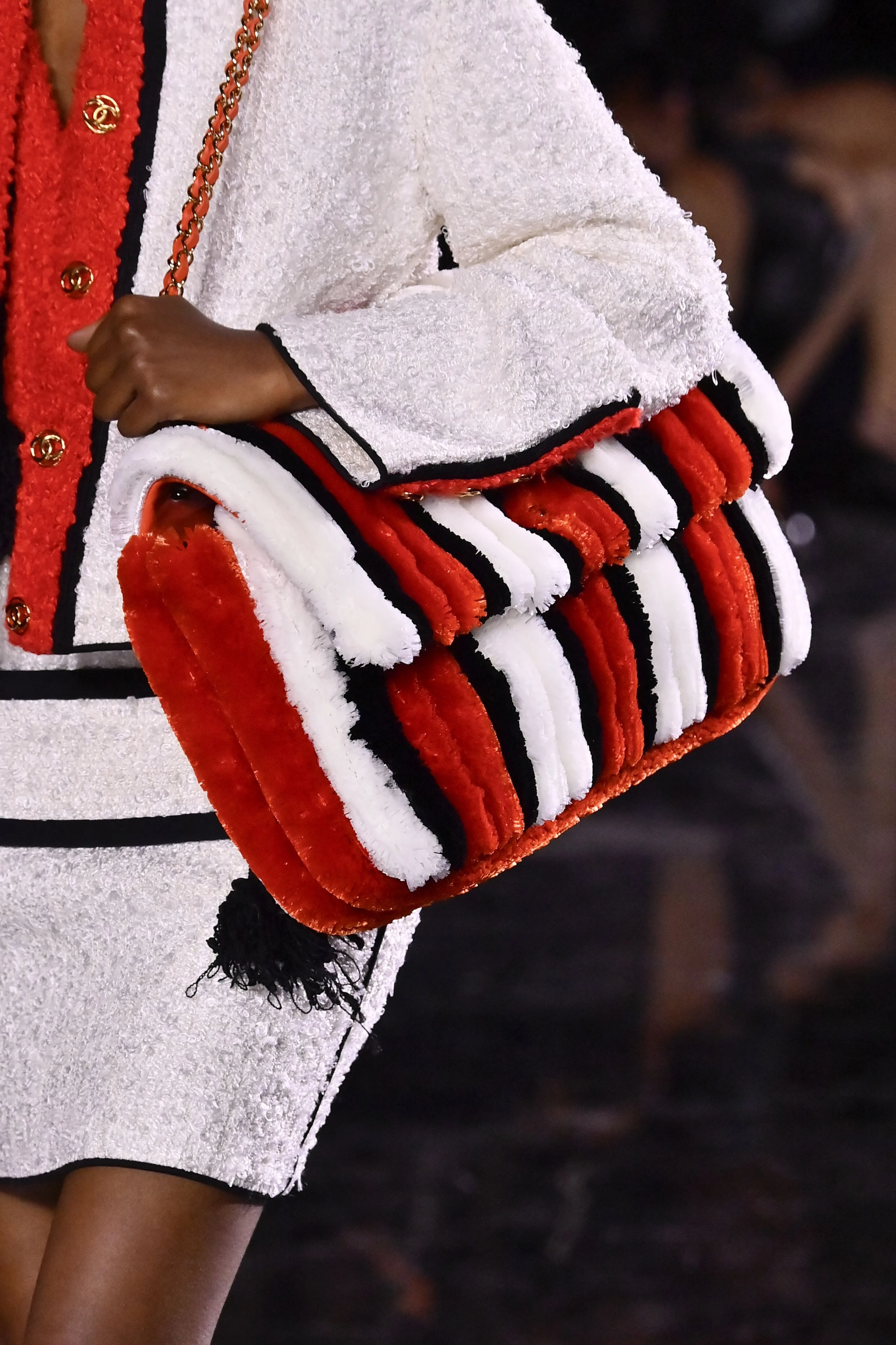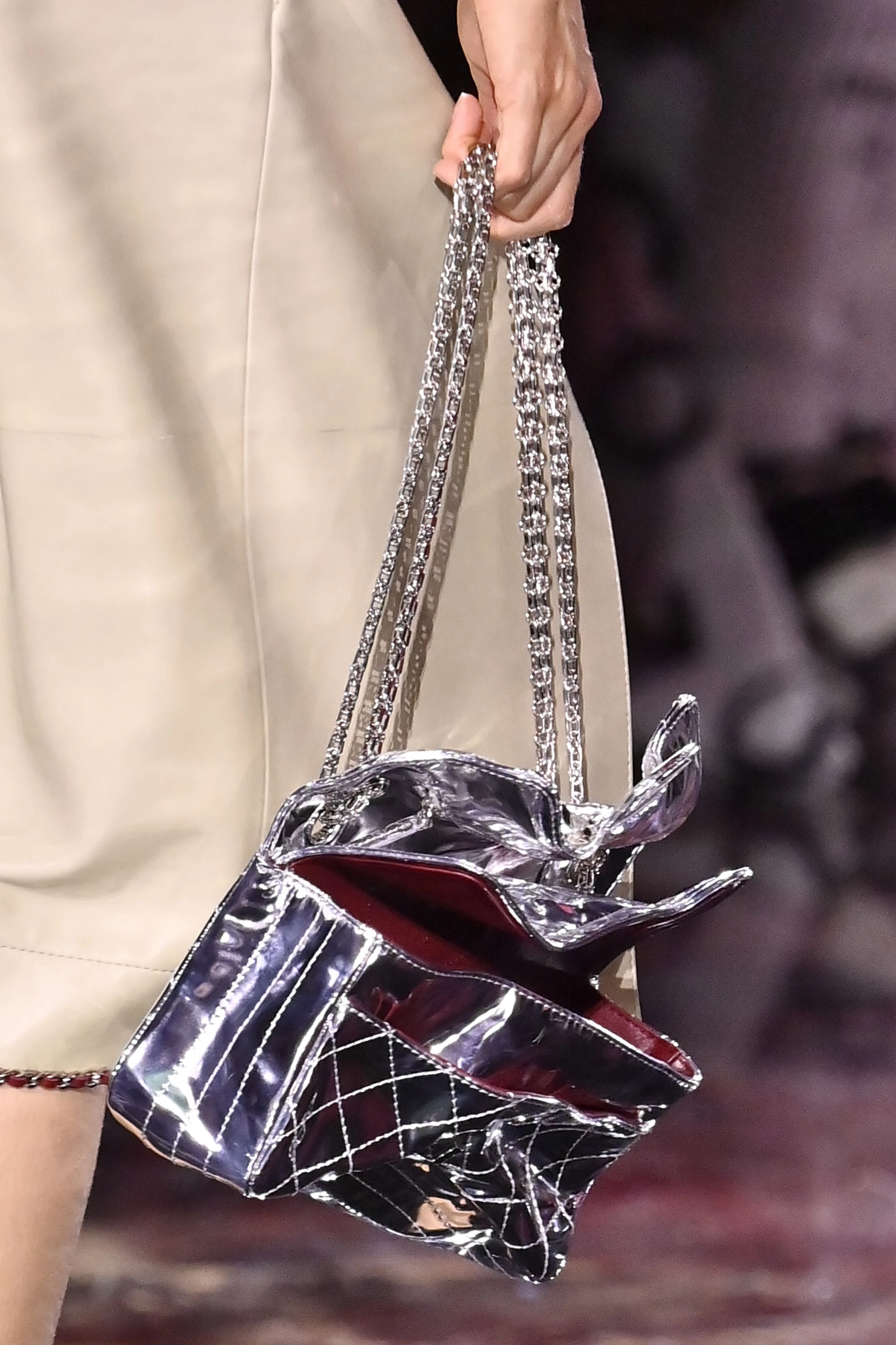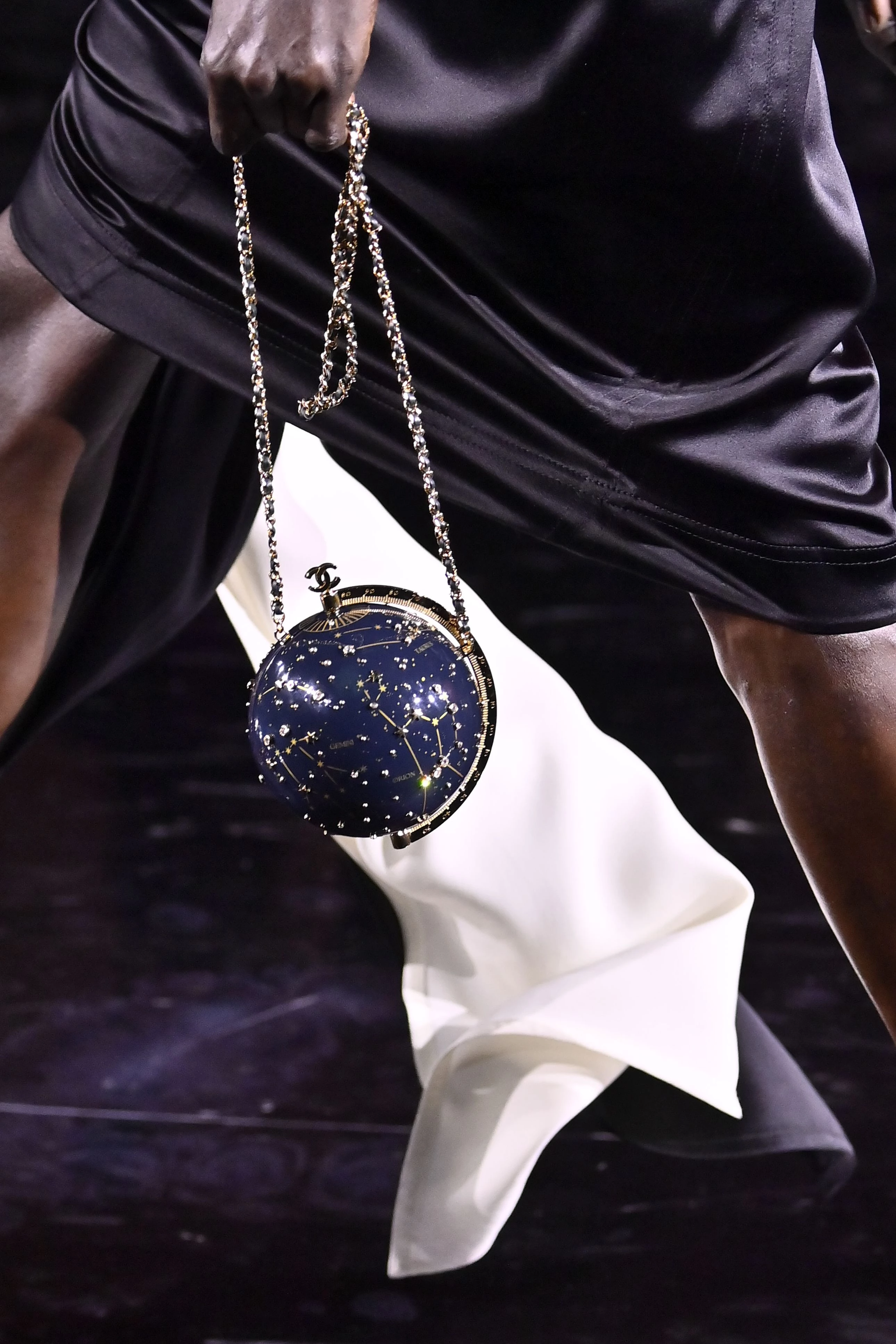 Вечірні клатчі варіювалися від стриманих пурпурових до моделей з ефектом trompe-l’œil – із зображенням зоряного неба. Максісумки, своєю чергою, стали символом позачасової сили: бежеві або чорні, із зернистої шкіри чи м’якої стьобаної замші. Vogue.ua зібрав 21 сумку з дебютної колекції Матьє Блазі для Chanel, які мають усі шанси стати гітами прийдешнього літа.