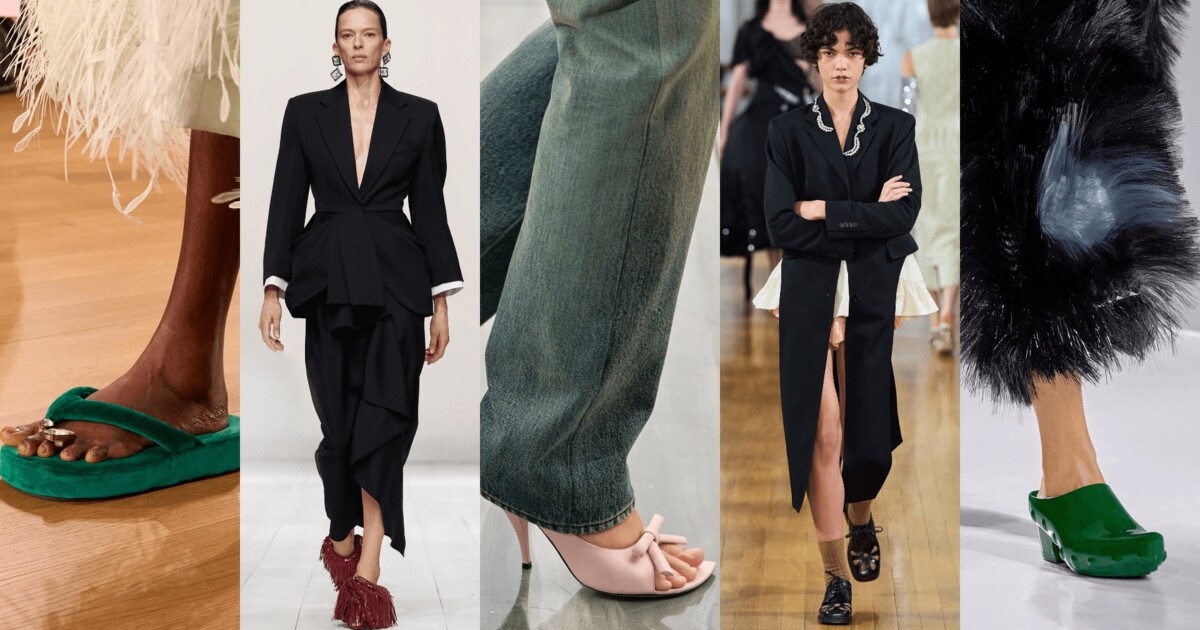 Минулого року вони вже переконали скептиків, а в сезоні весна-літо 2026 повертаються з новою силою. Miu Miu показали утилітарну версію, McQueen – мюлі peep-toe, а Bottega Veneta й Loewe – яскраві, футуристичні моделі. Суперечливі зовні, але напрочуд зручні.