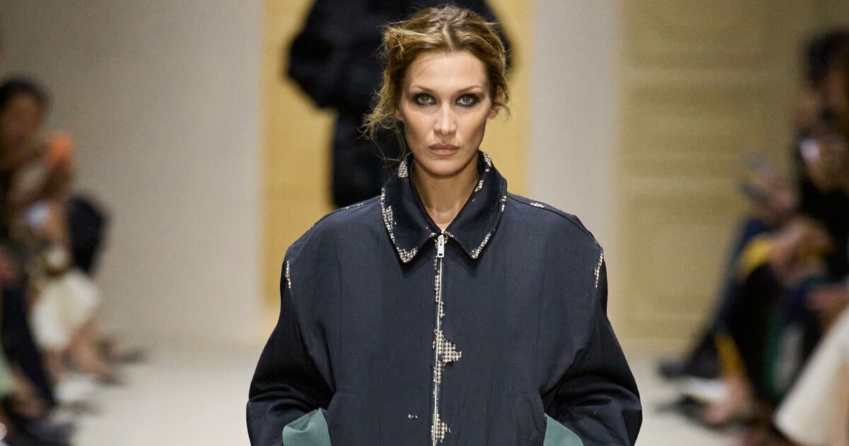 Одним із найяскравіших моментів став вихід Белли Гадід: оверсайз-жакет і спідниця-олівець поступово відкривали прозорий легкий плащ, під яким з’являлася принтована мідісукня, а згодом – вечірній комплект із топа та шортів. Один образ – чотири сценарії.