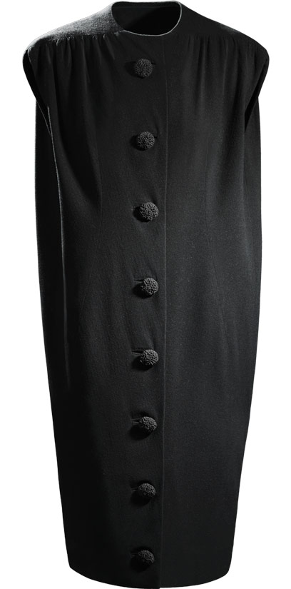 За допомогою округлих комірів-стійок Крістобаль Баленсіага візуально подовжував жіночі шиї, водночас привертаючи до них увагу і роблячи вбрання завершеним.