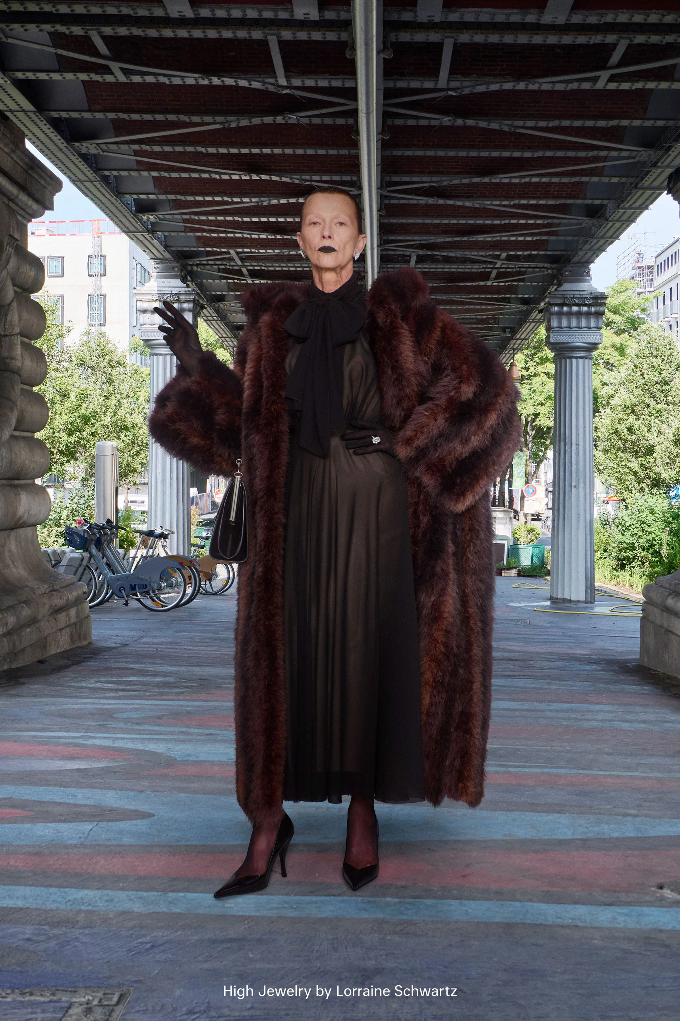 Показ відкривали голоси команди Balenciaga — майстрів, дизайнерів, піарників, координаторів, асистентів і тих, хто стоїть за кожним швом, кожним силуетом, кожним виходом на подіум. Останнім пролунало: "Демна". На подіумі з’явилися Кім Кардаш’ян у сукні-комбінації та з діамантами Елізабет Тейлор, Ізабель Юппер у чорному светрі з корсетними штанами, Наомі Кемпбелл у сукні з лелітками, Єва Герцигова в неоновому сатиновому бюстьє, BFRND — чоловік Демни — у перебільшеному костюмі з довгим піджаком. Усе виглядало як маніфест Demna-естетики — але з її найчистішим, найвивіренішим фіналом.